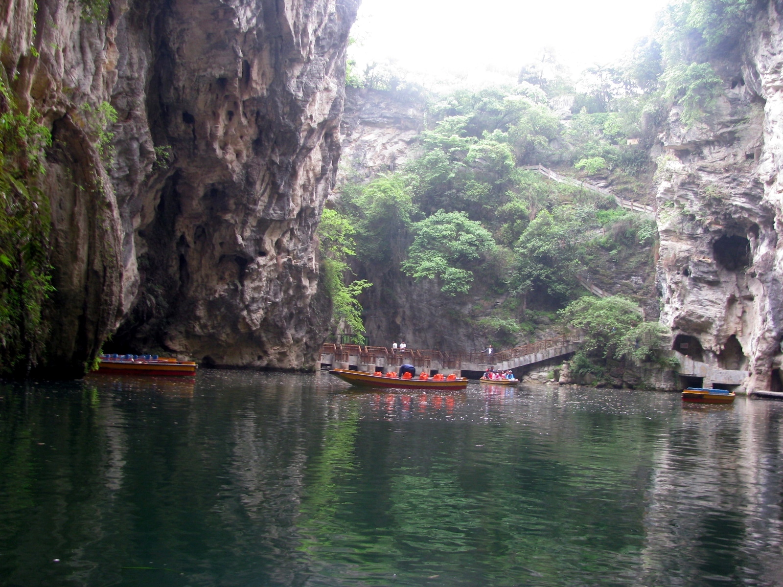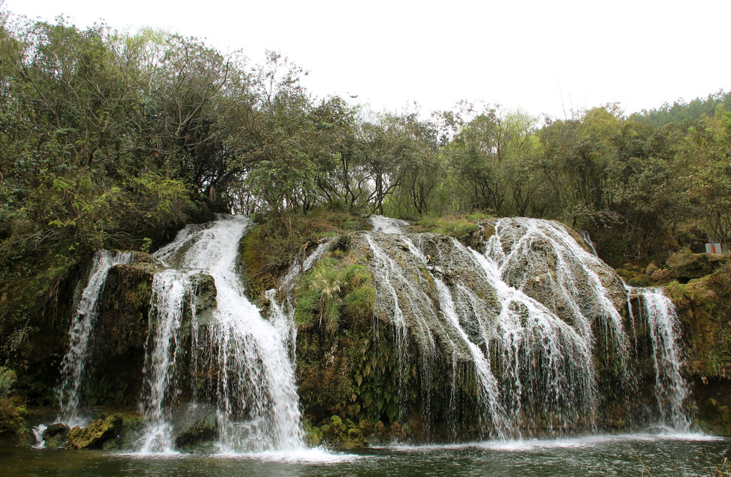 整个景区并不大,步行即可。也许之前已经看过了大山树海,以至天河潭的景色并未能激起我们的惊艳。景区还源源不断地有游客进入,保安们也进来开始清场,幸而我们也游览的差不多了。