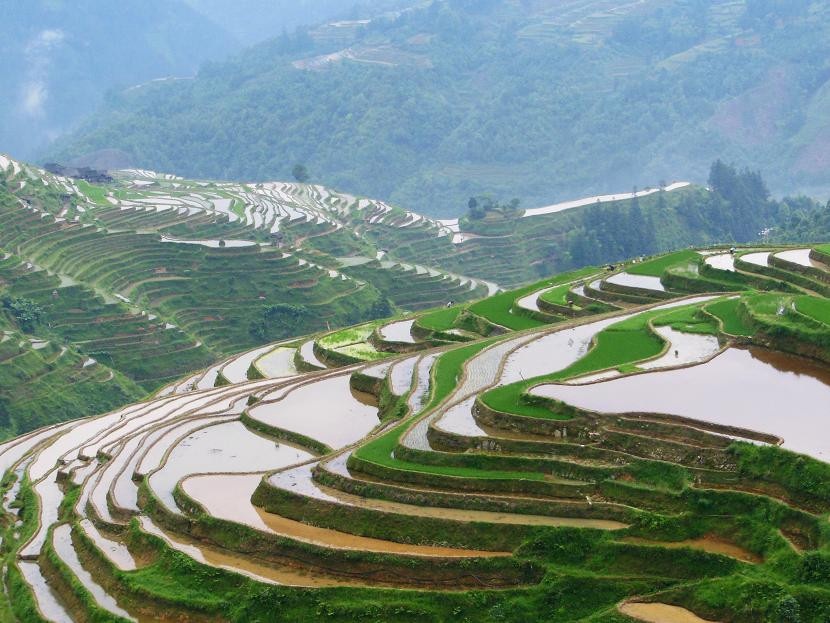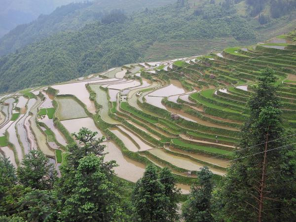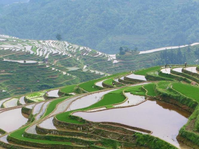 这里的梯田给人大片绿色的视觉冲击。