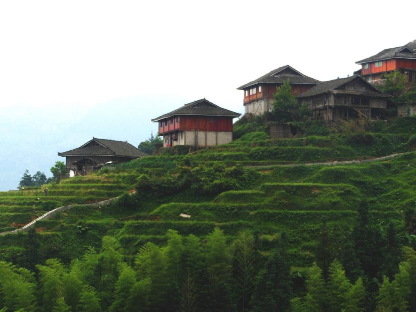 嵌入在梯田之间的几座房屋,显得非常协调。