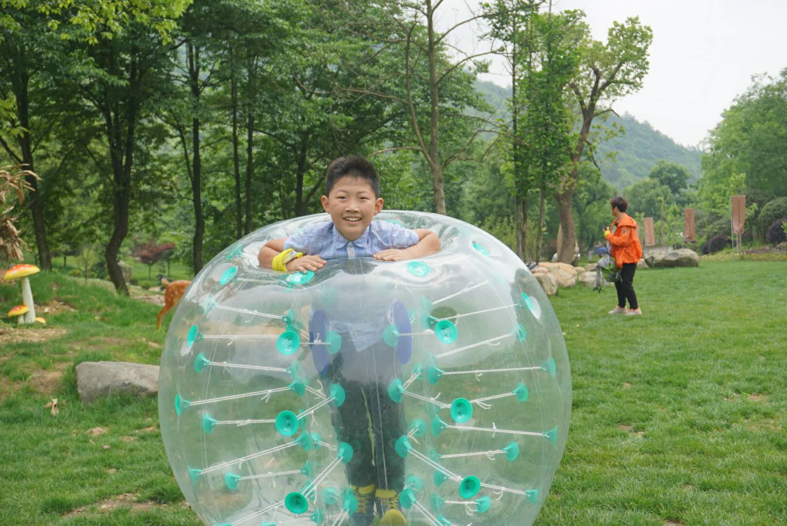 带领大家简单的热身过后, 突然发现一块大草坪 , 所以为了照顾队里 唯一的两个小朋友, 所以先去皮它一波