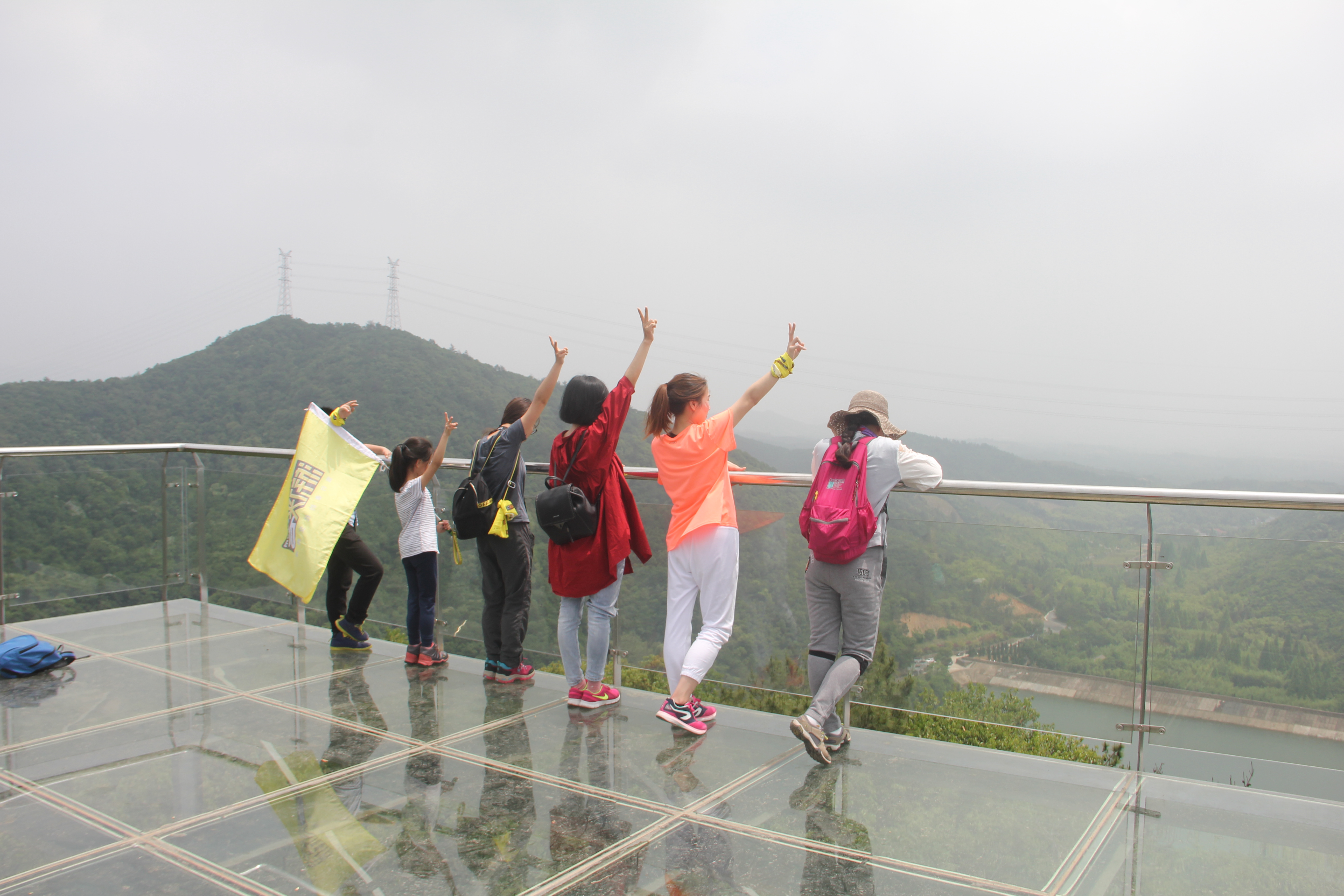 在草坪上简单的玩耍过后 ,我们出发了 ,向第一个目的地 玻璃观景台 开拔