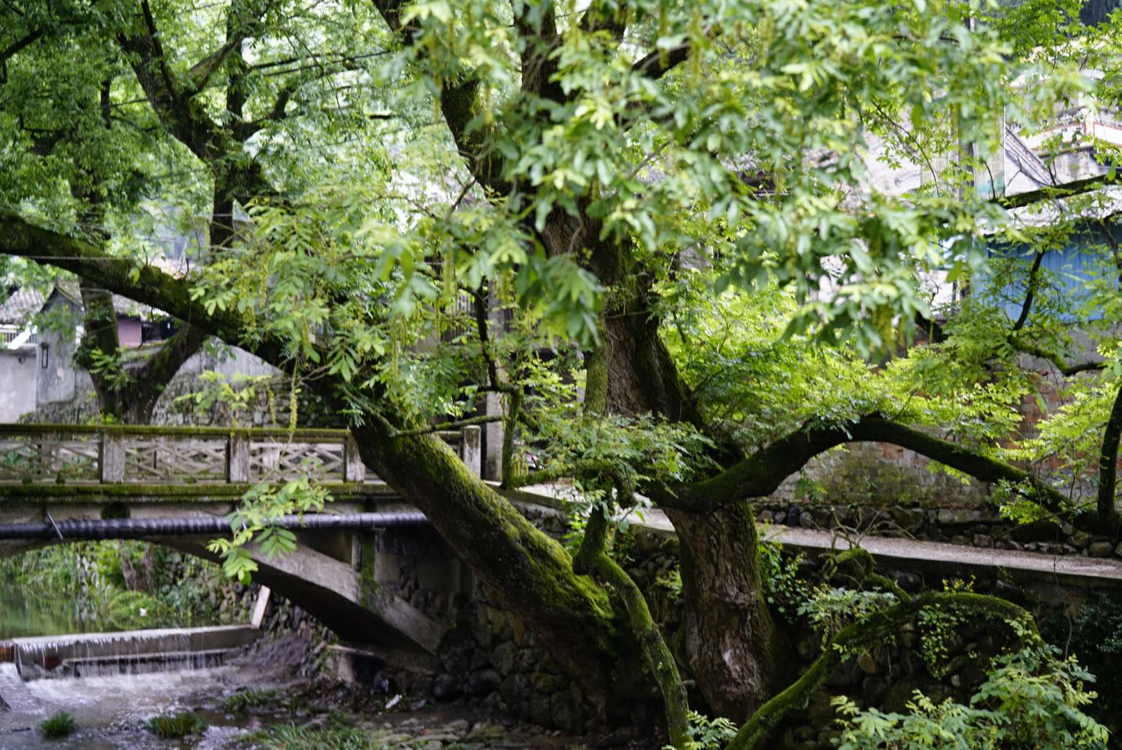 古色古香的村子,有小桥流水人家也有老树和家鸭🦆。