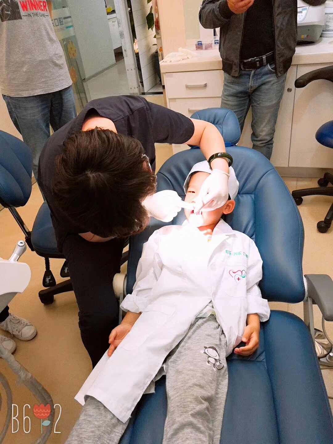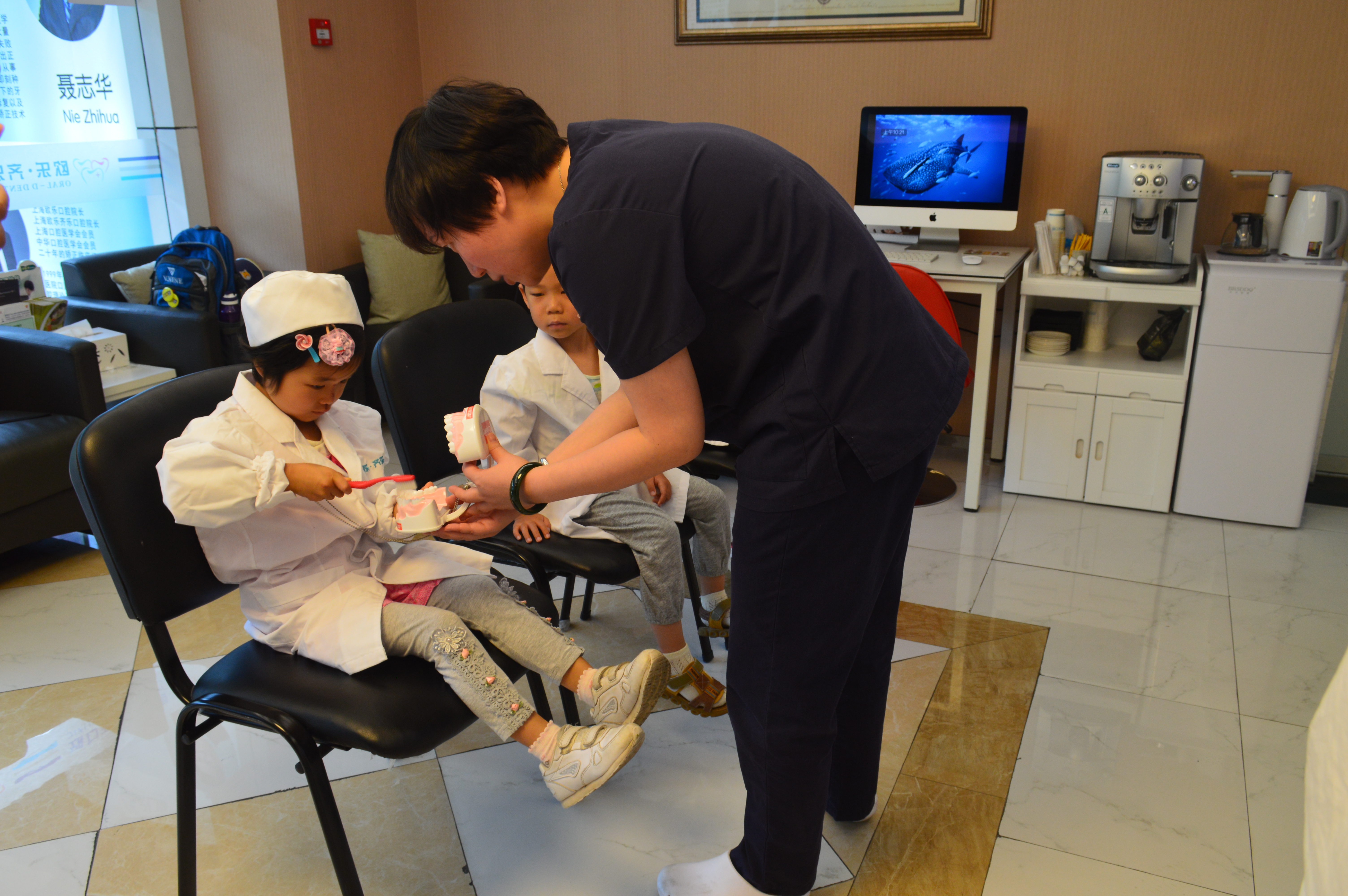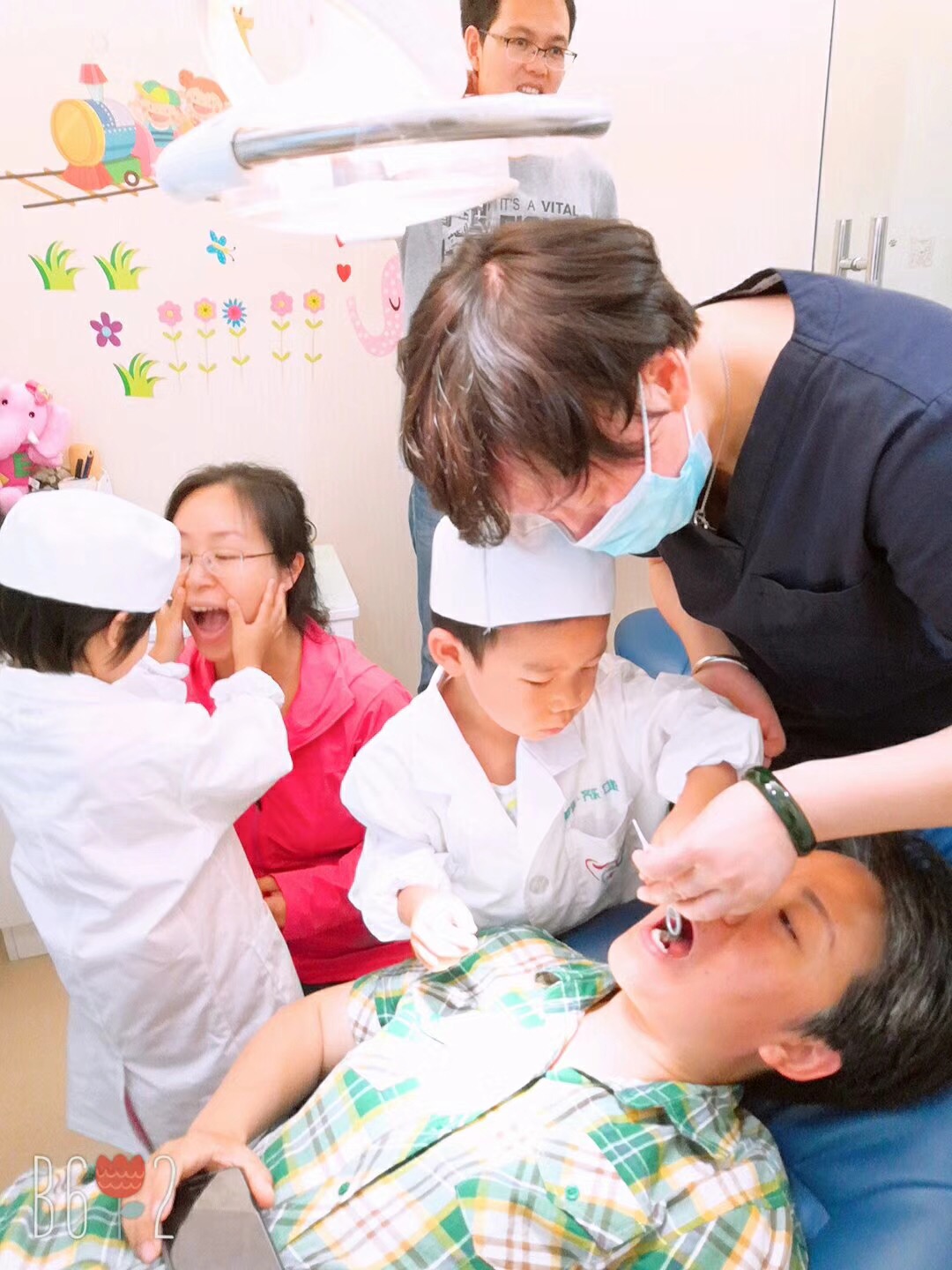 我们先相互进行了小小的了解,然后穿上工作人员发的医生白大褂和帽子,果然是人靠衣装啊,小小牙医的形象一下子就出来了~