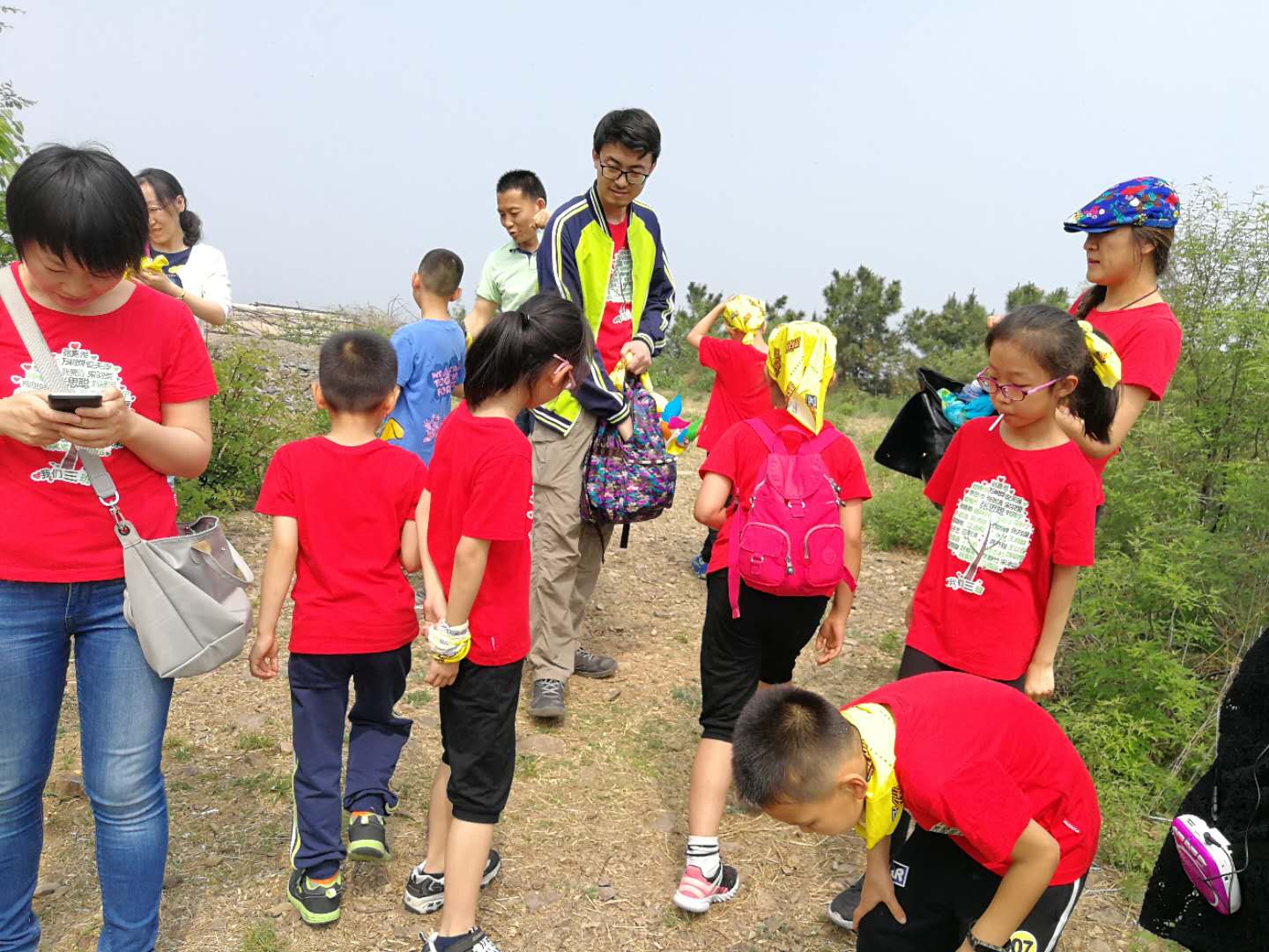 讲解员引领宝贝来到基地内蜜粉源植物区域,对植物进行分类讲解,登山途中可以看到路边荆条、杏花、桃花、李子树、山楂树、枣树、栗子树等,不同的季节可以观看不同的花,有时还能亲手采摘果子。