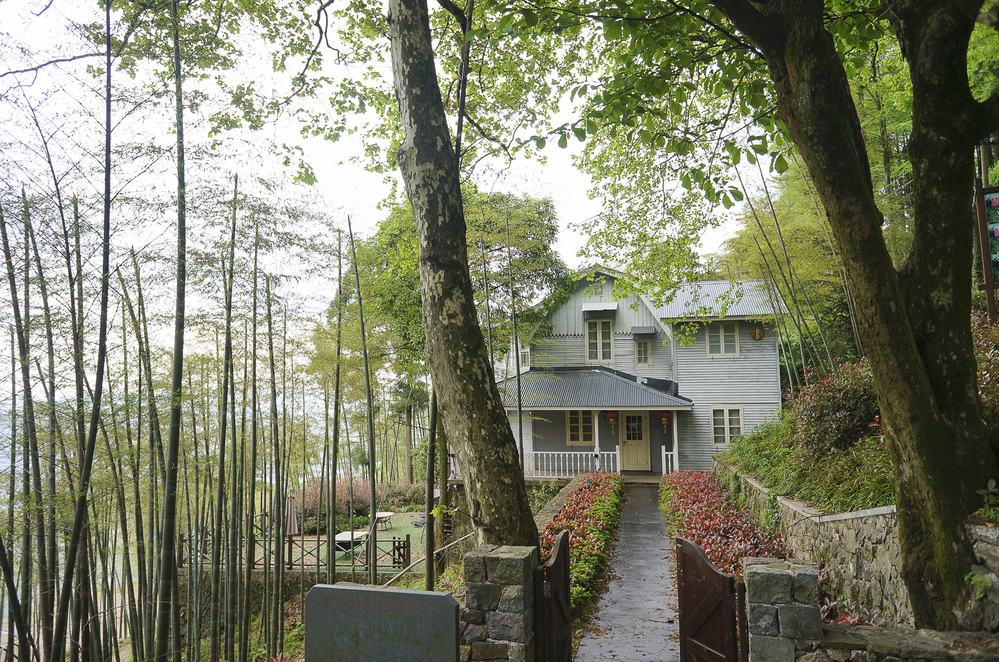 莫干山,位于浙江省北部德清县境内,春秋末年,吴王阖闾派干将、莫邪在此铸成举世无双的雌雄双剑而得名。山上翠竹 满坡,气候凉爽宜人,素有“清凉世界”之称,清代开始已成为我国四大避暑胜地之一。行走在蒋公道古道上,沿途可见大大小小各式建筑精美的西式别墅,别墅建立在山间,藏在竹林间,参差不齐,形状各异,有“世界建筑博物馆”之美称。据统计莫干山共有别墅250多幢,有哥特式的尖顶建筑,有巴西里加建筑的模拟品,有巴洛克或洛科科式的遗风,也有折衷主义的产物,无一雷同,分别代表了欧、美、日、俄等十多个国家的建筑风格,给人周游列国的感觉,而每一幢别墅的背后都有着独特的故事…