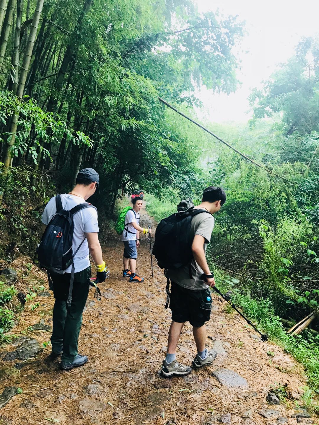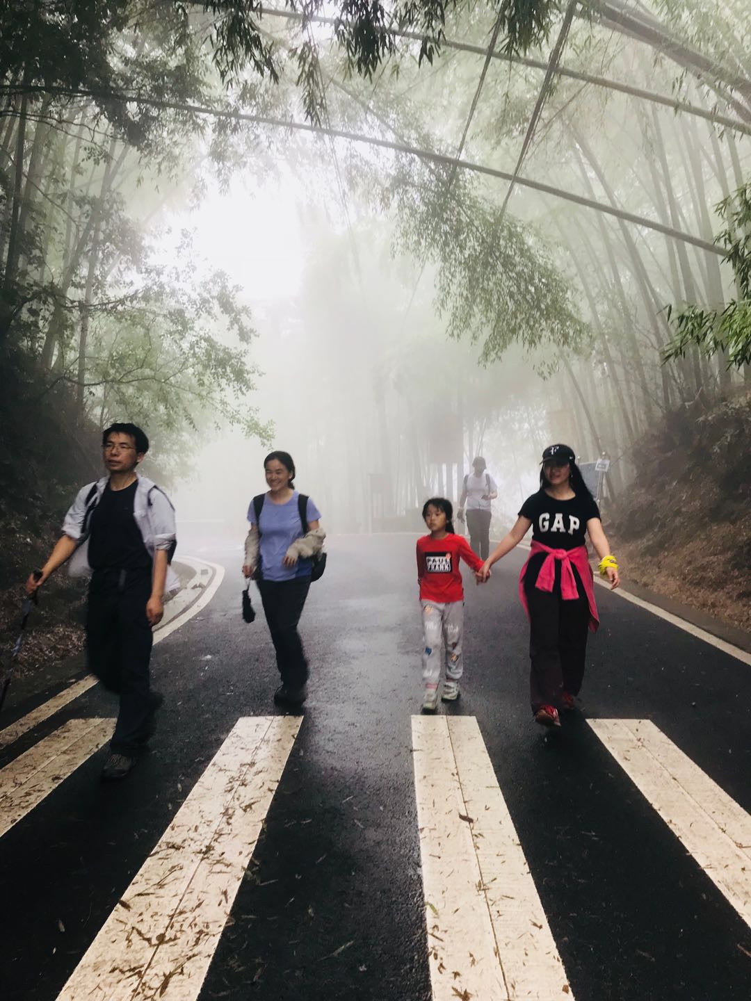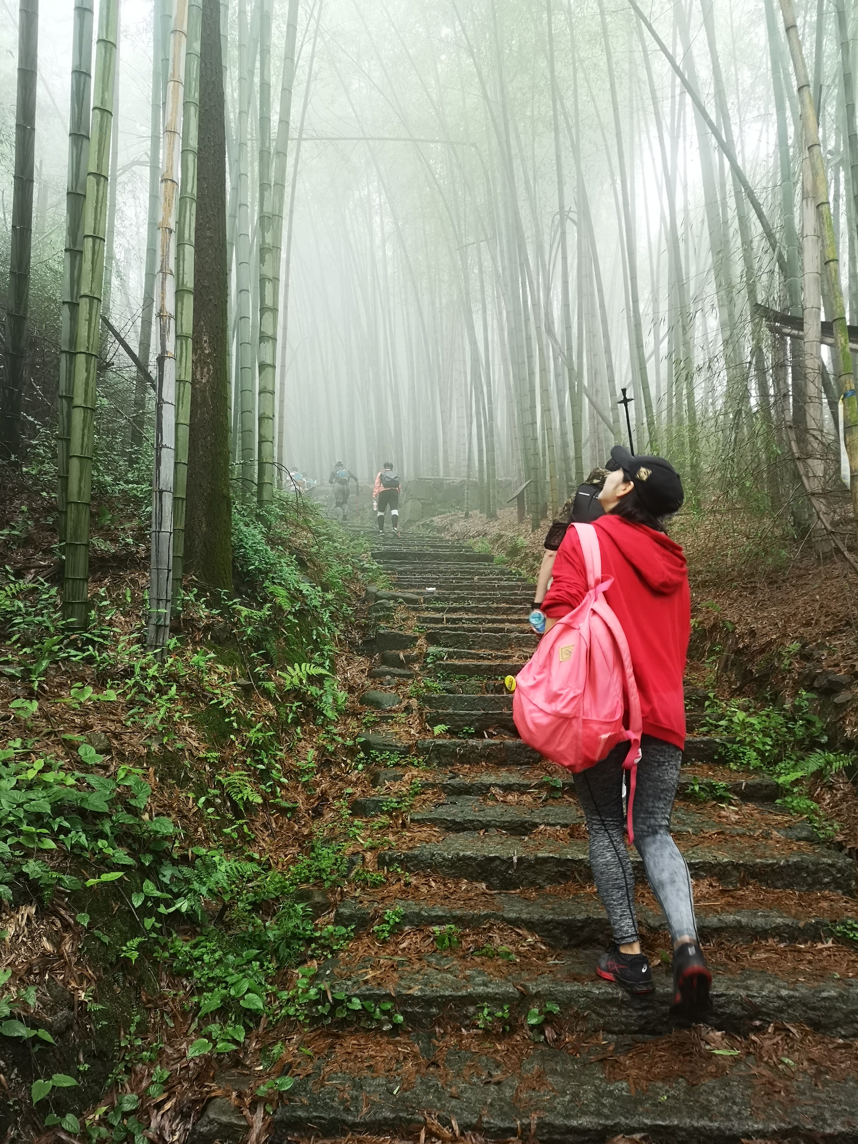 10KM历时5个小时的hiking(感谢领队勃朗峰给分享给我这张我们的足迹),乐哉乐哉,途中,我一直在各种感慨:天气正好,不下雨,也没有太阳,而且还有一点点雾(也许真的是千帆领队给我们带来的好运,她人品超级好),拍照能有一种置身于仙境的感觉,仙气缭绕,郁郁葱葱的竹林,宛如天然氧吧,不禁让我想贪婪的大口大口的呼吸氧气,真的很适合工作之余来此放松,卸下繁重的工作压力,来此徒步吸氧,调整心态,约上三俩好友,或许520,或许六一儿童节,都别有一番情趣~