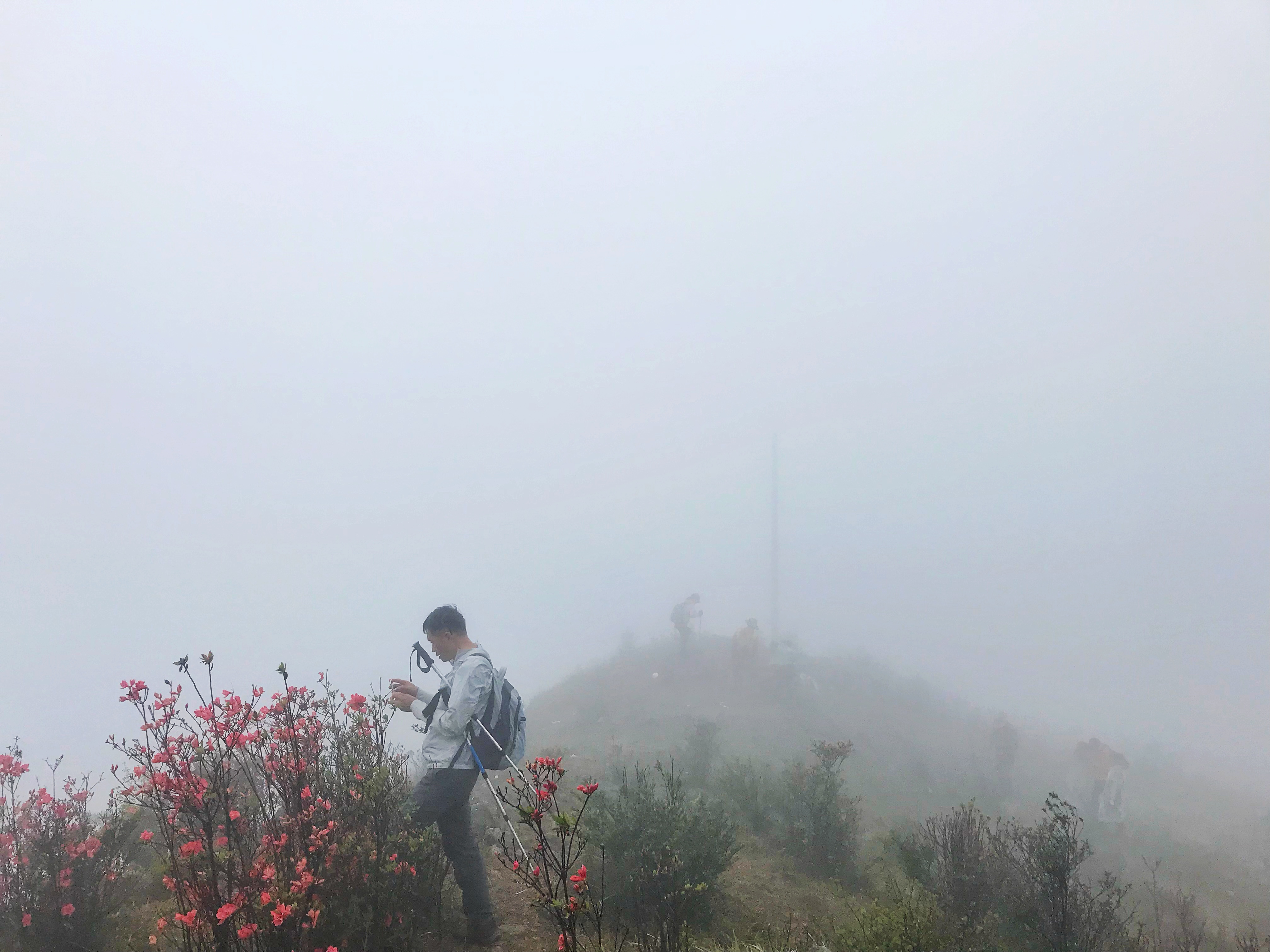 快到山顶的时候,映山红越来越多。一丛丛,一簇簇,红得热烈似火。
