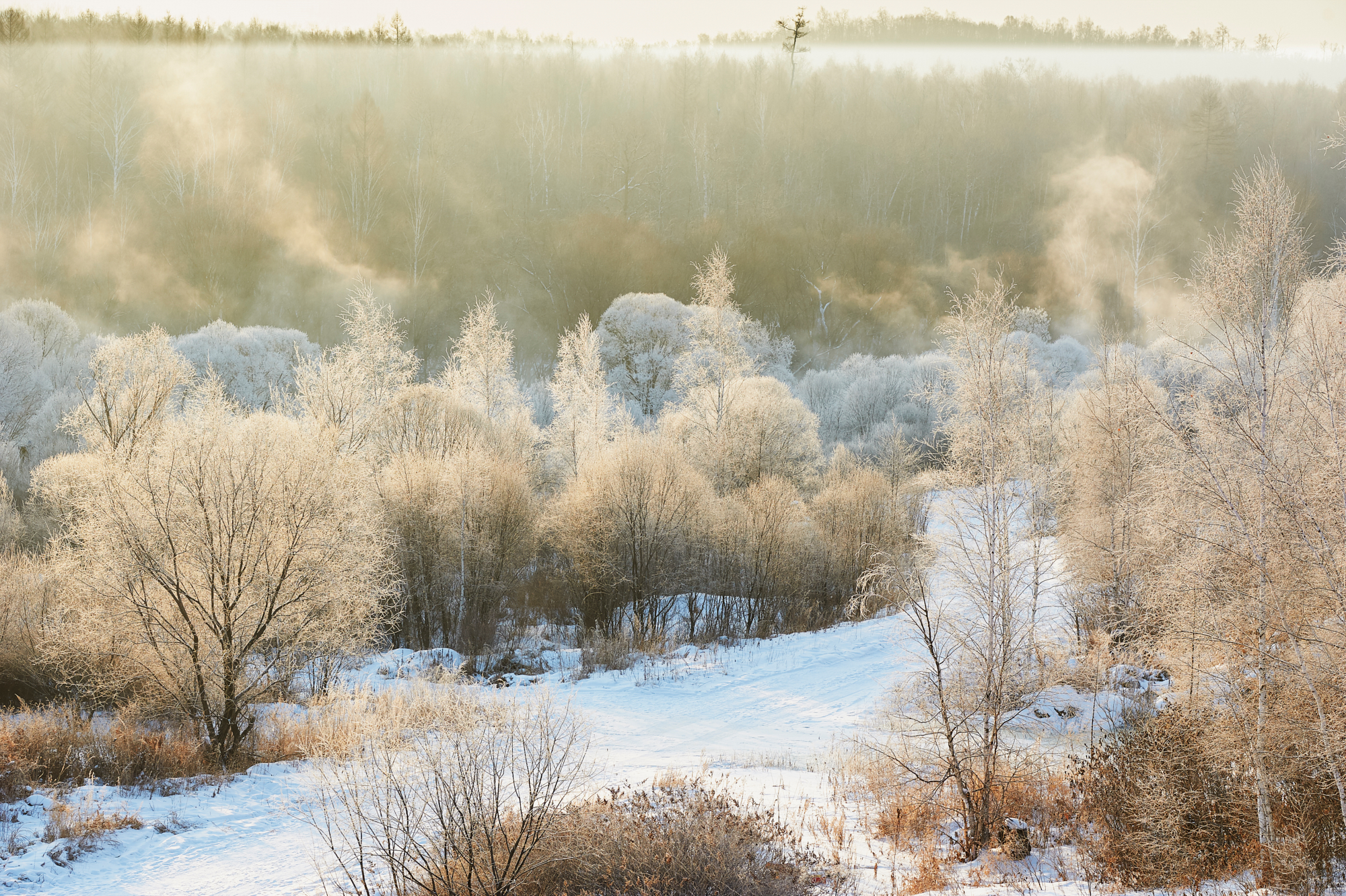 第六次是库尔滨拍雾凇,运气还不错