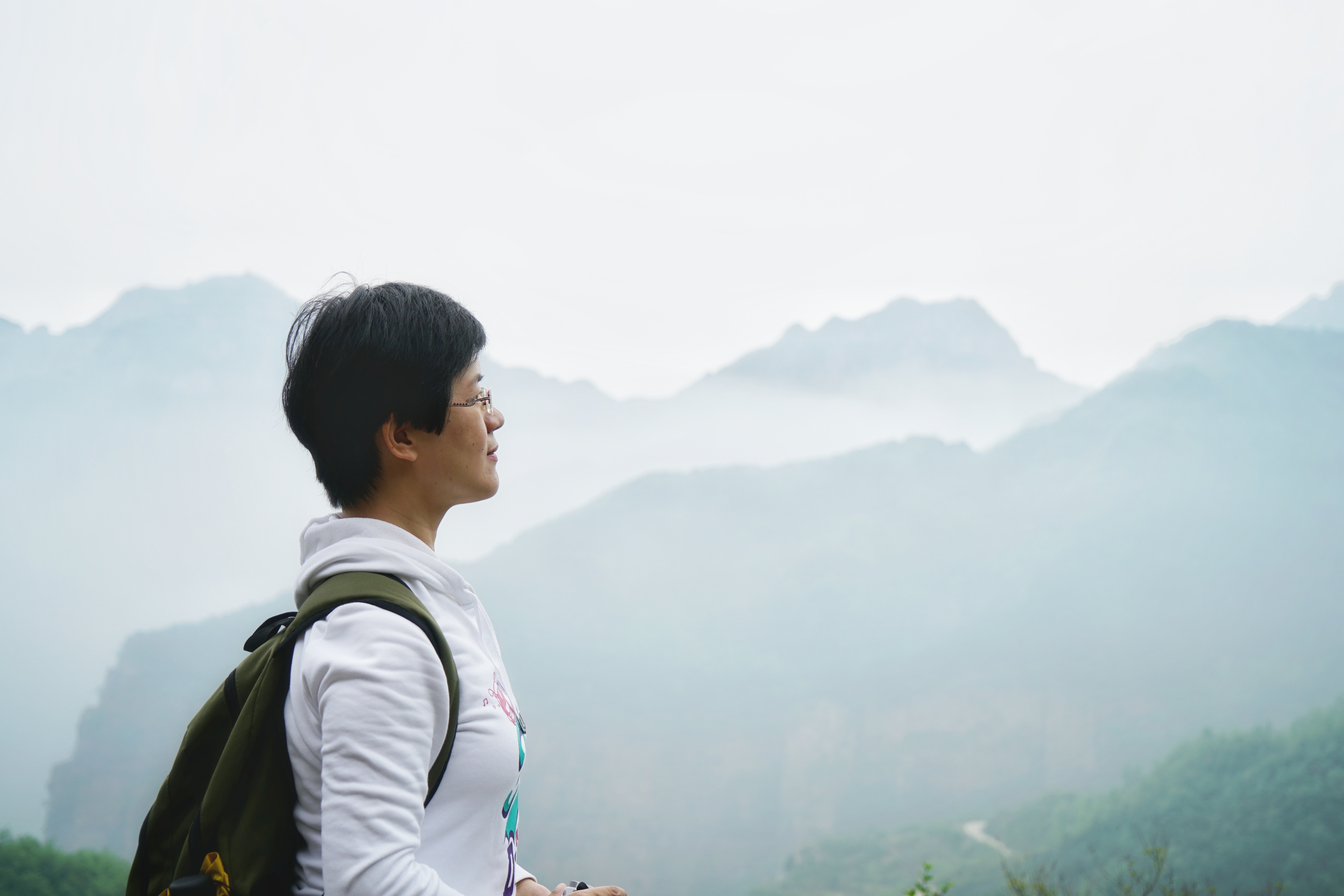 每次出来带队,我总是很容易为那些白头偕老,相濡以沫的爱情感动。看到他们两我的内心就设计出了一个“太行侠侣”的剧本,趁着背景光线都很适合拍下了自己认为很满意的照片,拍的时候我还刻意找角度避掉了边上“太行云顶”的石碑。当准备离开去往下一个观景台的时候,他们却在石碑处停下,让我给在那里拍一张。一开始我以为也是要一张到此一游照,可接下来的话可能会让我每次想起都不能平静。