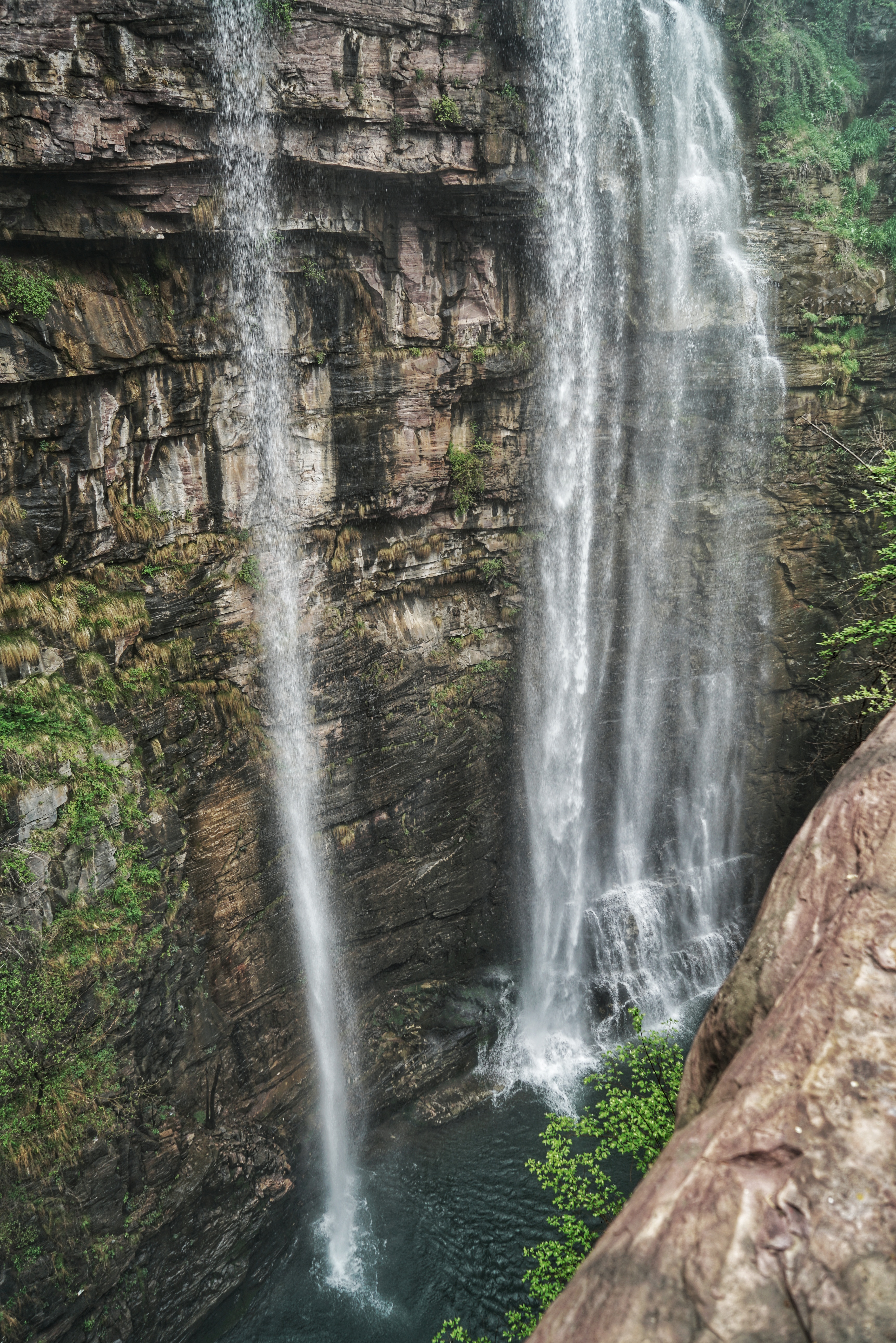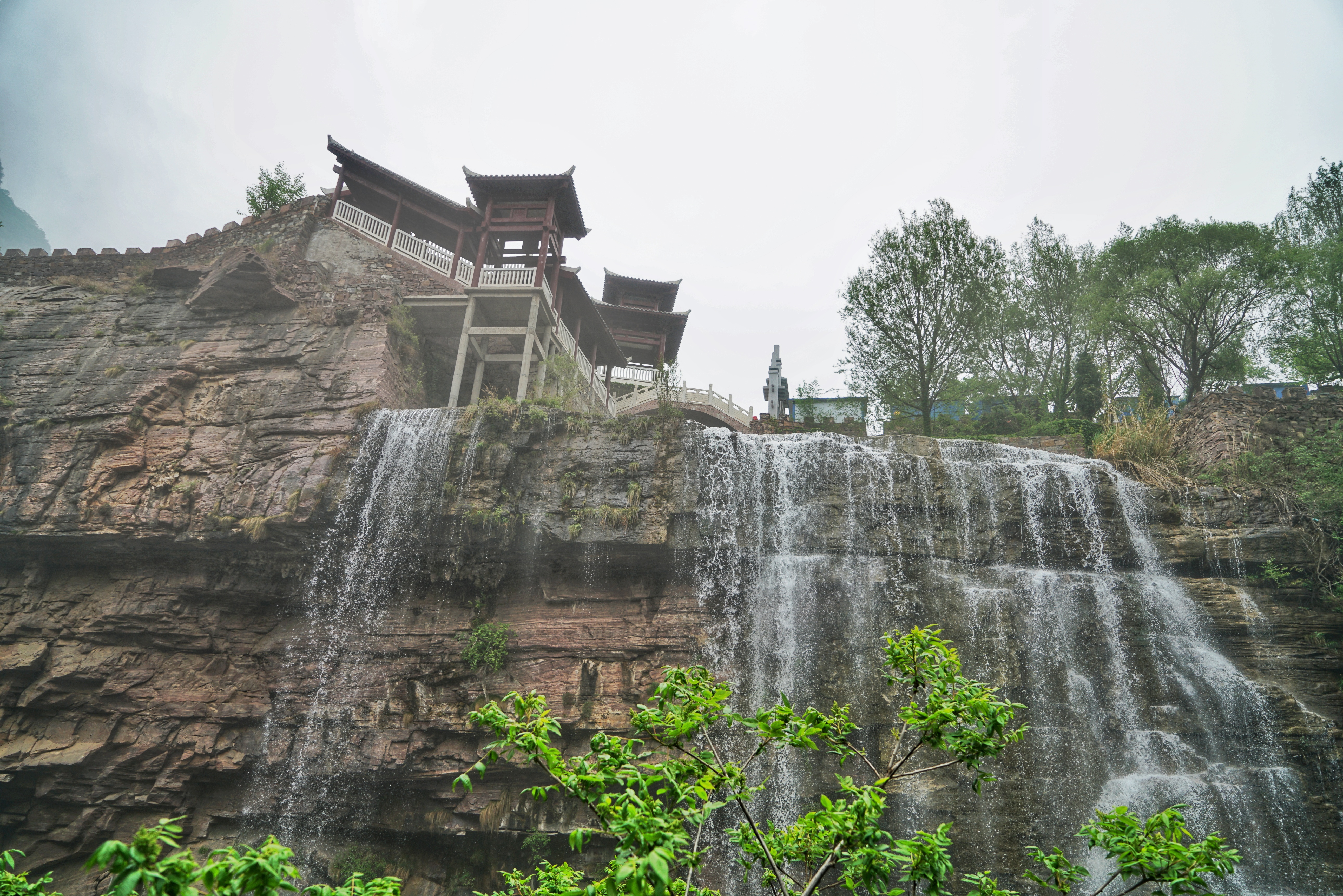 穿过锡崖沟挂壁,第一站是锡崖沟瀑布。这个季节水量不是特别大,不过在绝壁上倾泻而下还是有几分气势。