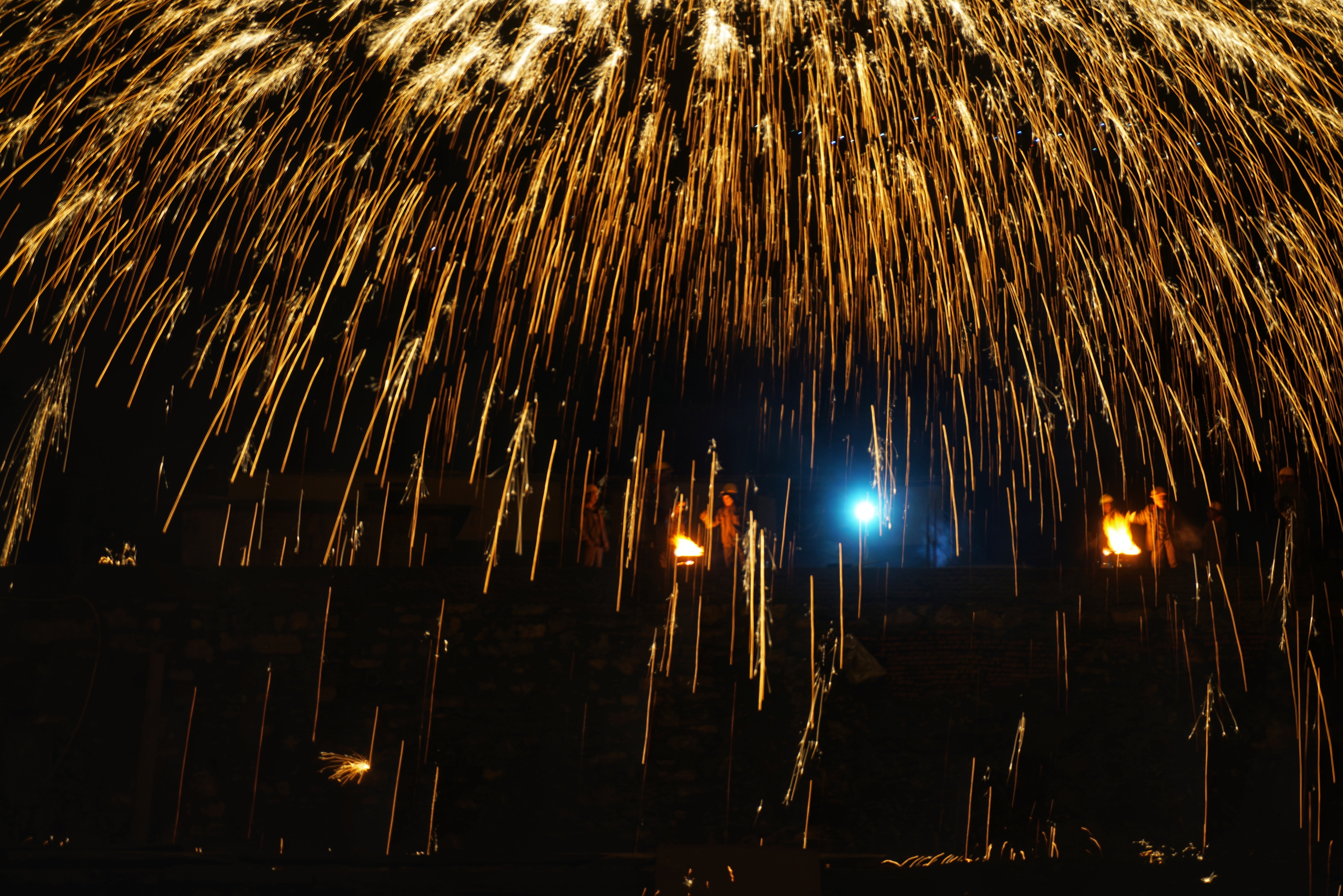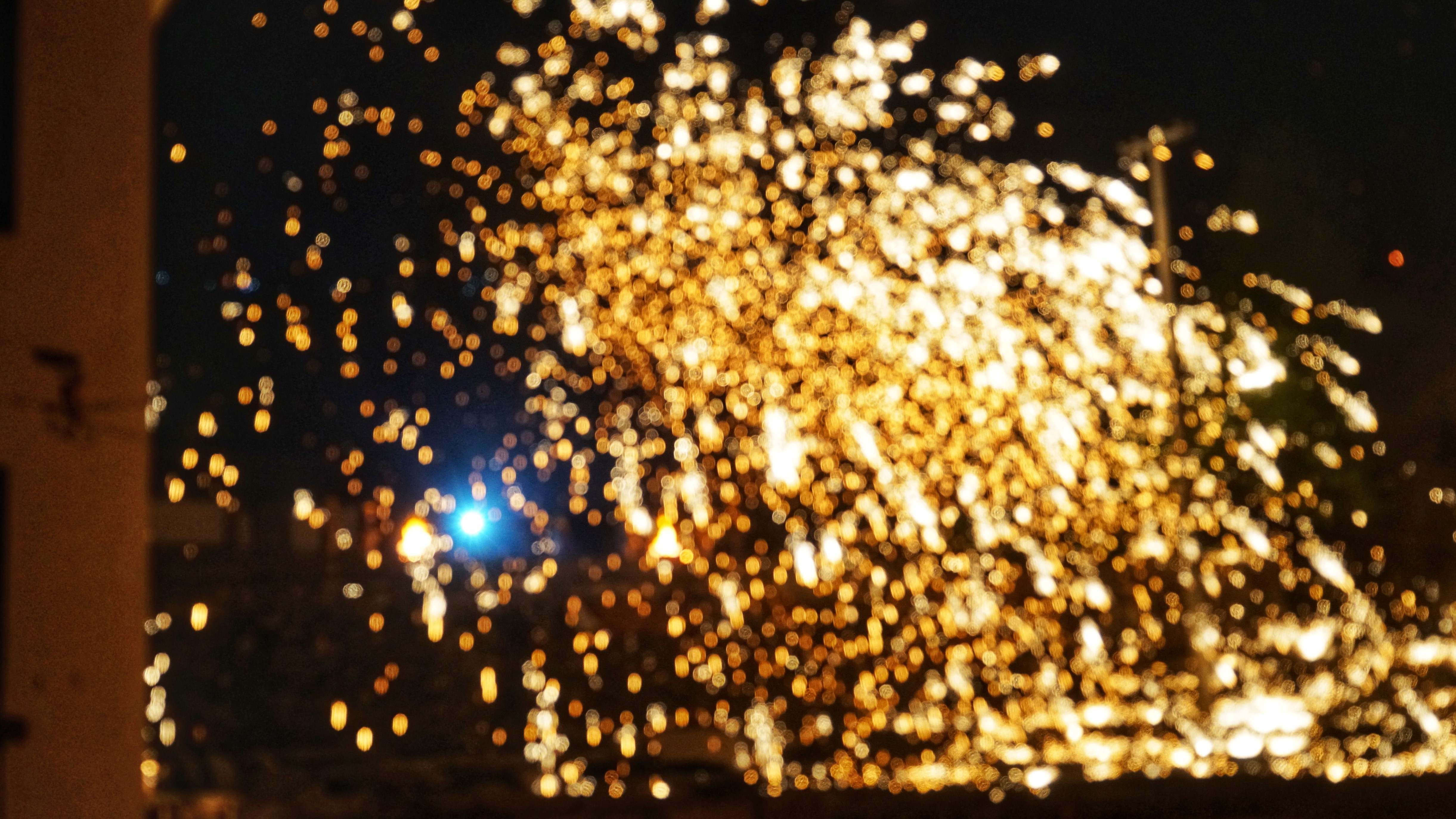 天色渐渐暗下来,安静的村庄被一声声尖叫和欢呼打破。原来今天有难得一见的晋城打铁花表演。打铁花艺人赤膊上阵,舞动着千余度高温的铁汁自如穿梭,被打击后的铁花纷飞,可迸出几丈高冲向空中朵朵绽放,场面蔚为壮观。打铁花最早可追溯到春秋战国时期,鼎盛于明清,如今却因为技艺艰难危险等原因濒临失传,是国家非物质文化遗产。只有在春节等民间喜庆活动时才得以一见。这意料之外的“加餐”,让我们兴奋不已,奋力冲向表演现场。没有脚架就手持拍摄了,请忽略我们因为激动而颤抖的双手。