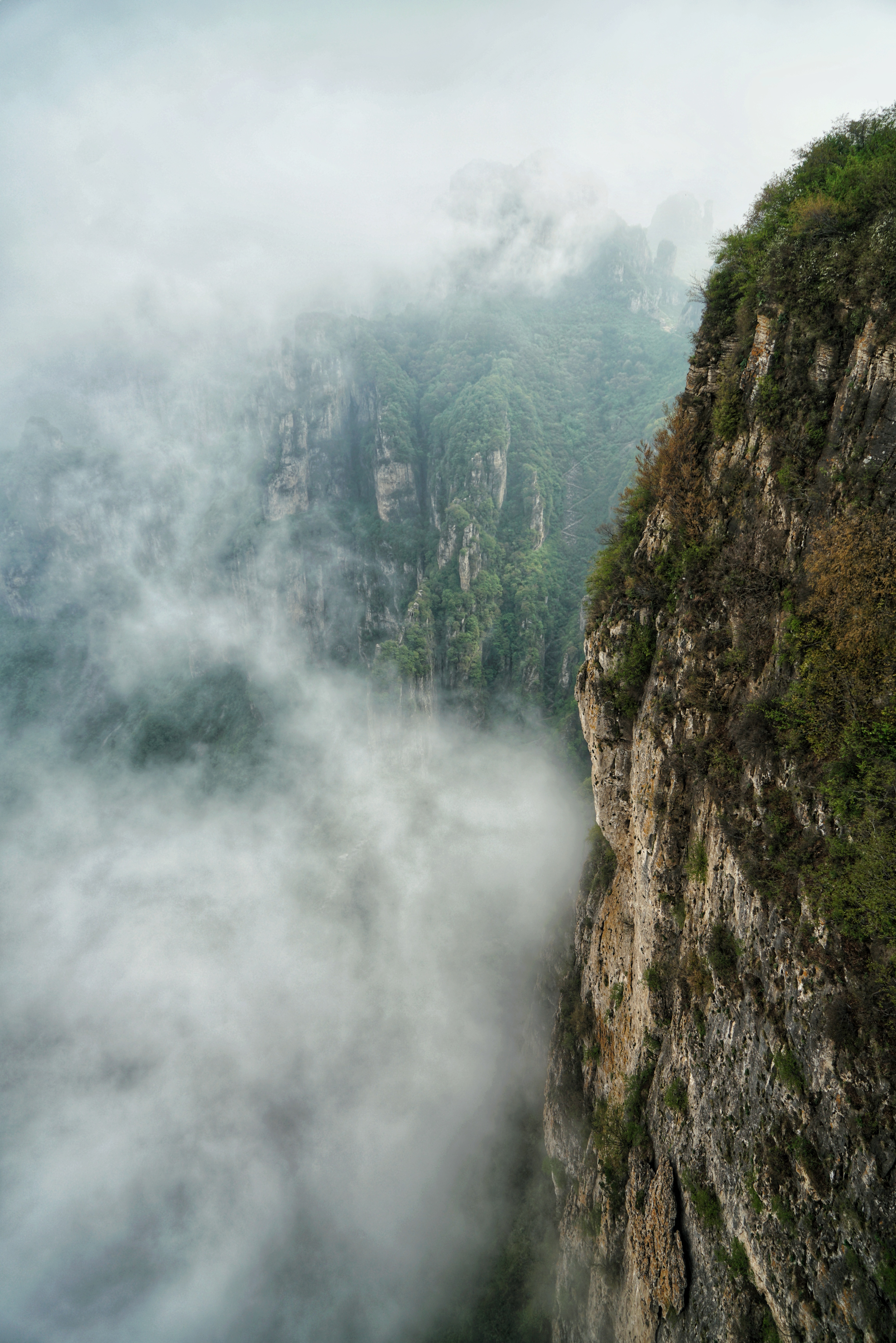 山中天气多变,午餐过后,不仅浓雾没有散去,反而下起了小雨。不过丝毫阻挡不了大家游览的兴致,坐上景交,我们即将领略此行最最惊险的“之”字形挂壁公路——锡崖沟挂壁。究竟有多惊险,听听沿途的刹车声就能领略一二了。不用多说,看视频。