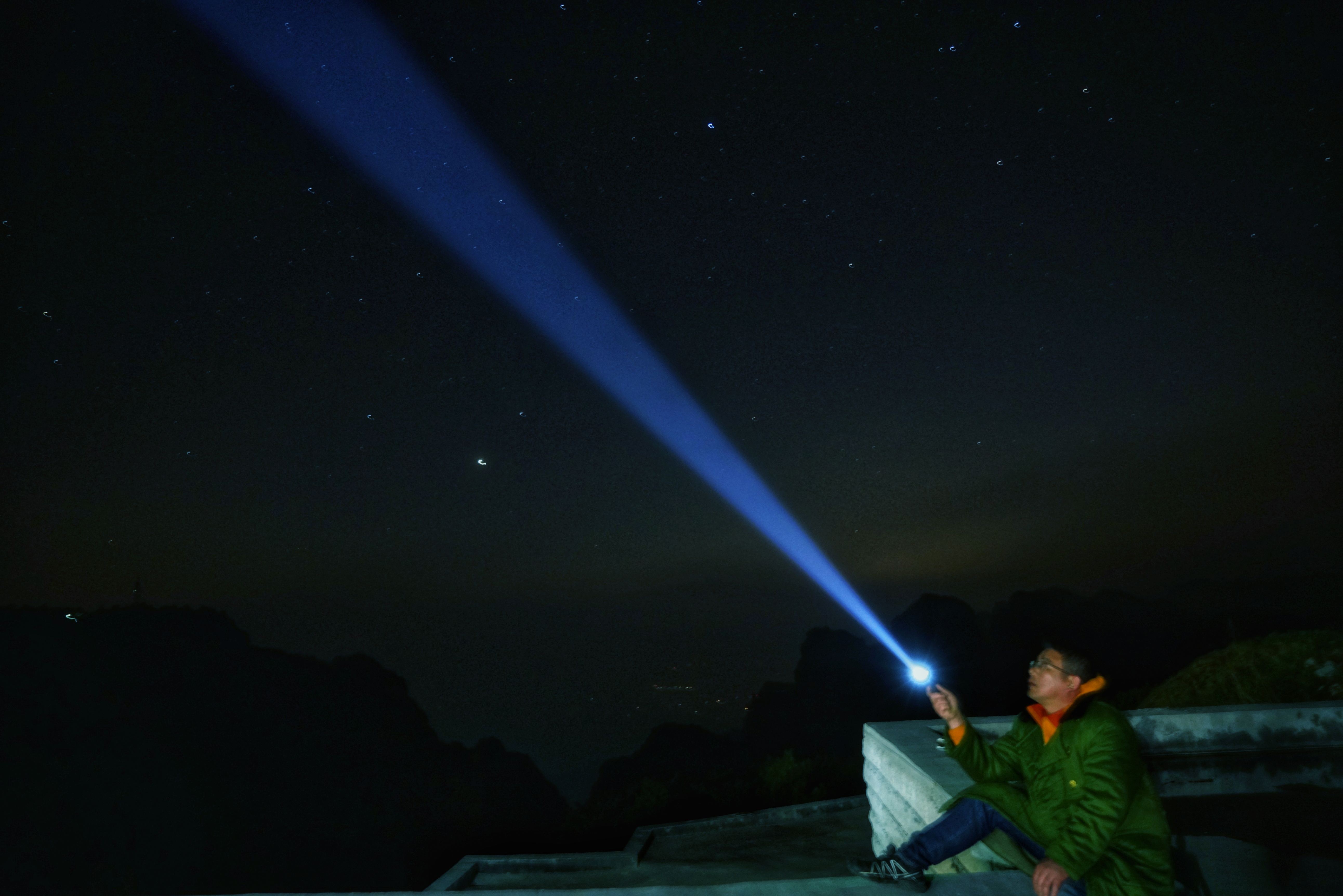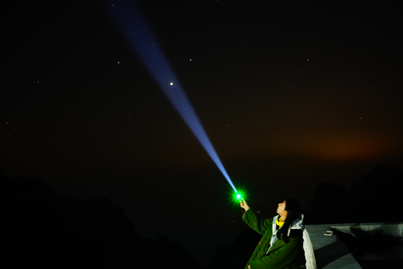 玩得起劲了,拿出手电,我们和天空中最亮的木星一起合影。