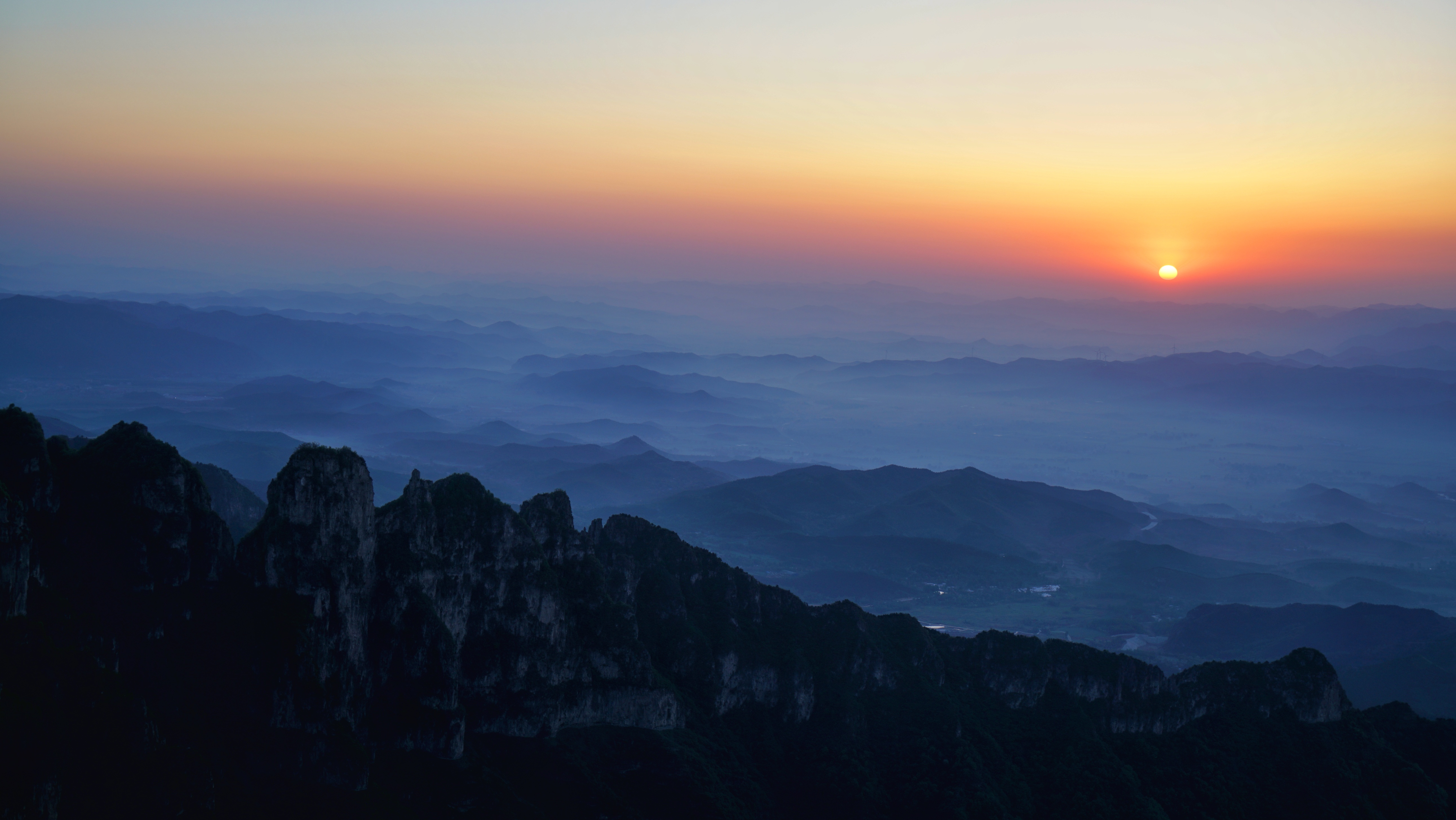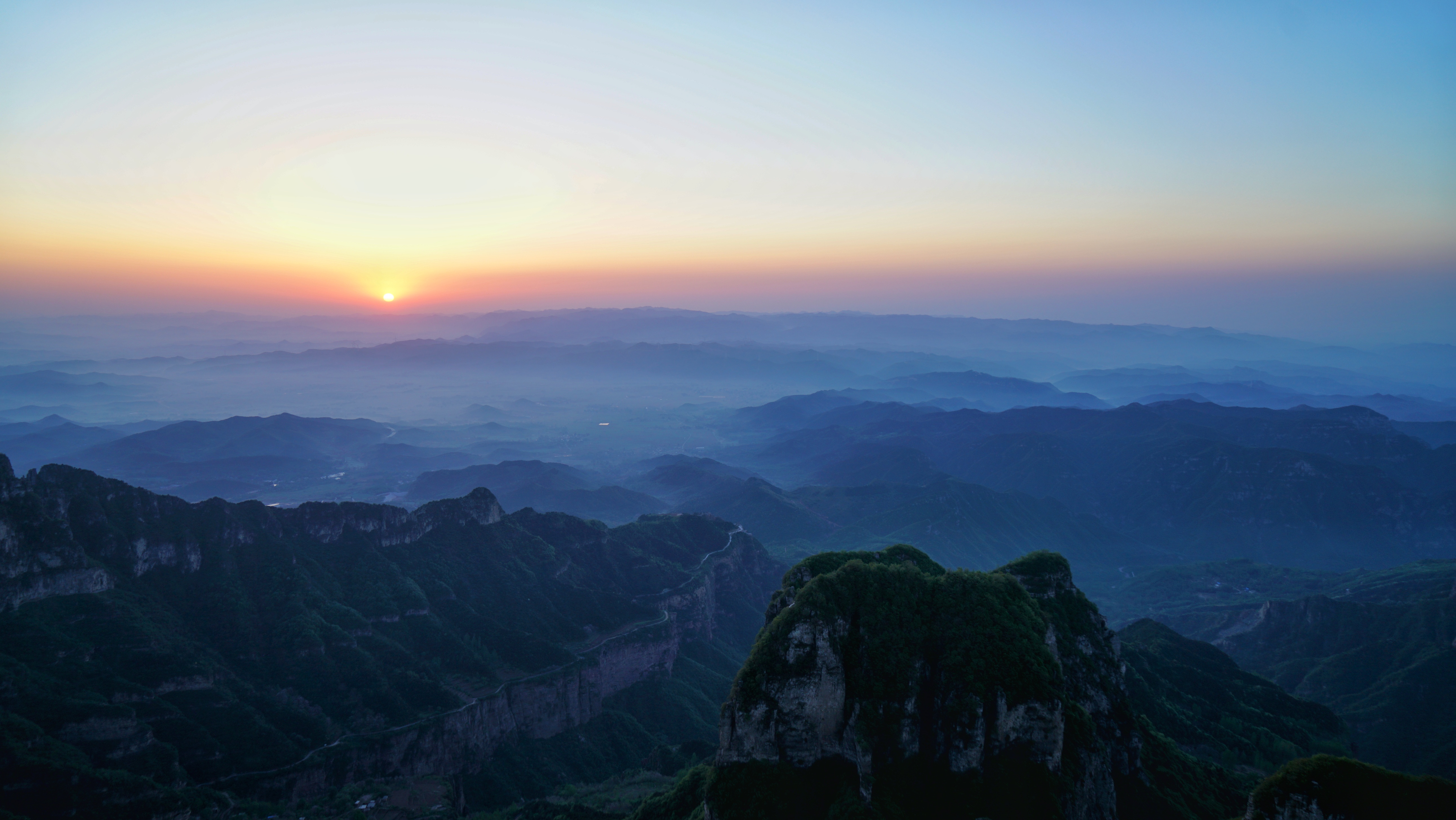 晨雾弥漫太行,远山近崖,如梦似幻。雨后山中的空气可以嗅出泥土的芳香,天空微微放蓝,阳光穿过乳白色的薄雾洒向人间,亲吻层层叠叠的山间植被,抚过村民晒在路边的白色床单,照亮向着目标努力行走的人们。