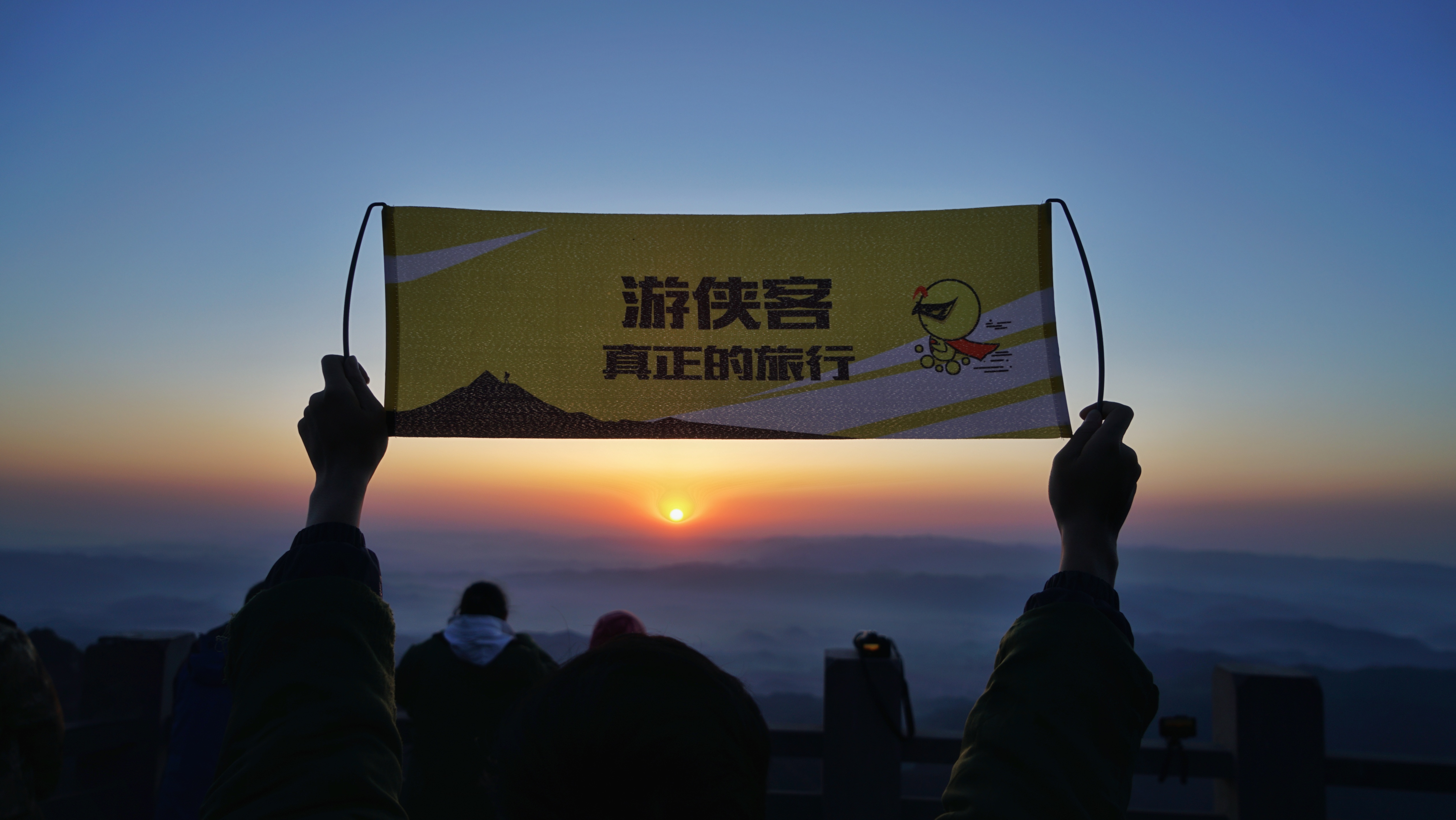 摆好装备,接下来只需静待日出。虽然没有传说中的云海日出,但是可以毫无遮挡的看到日出全貌已然是非常幸运的一件事了。