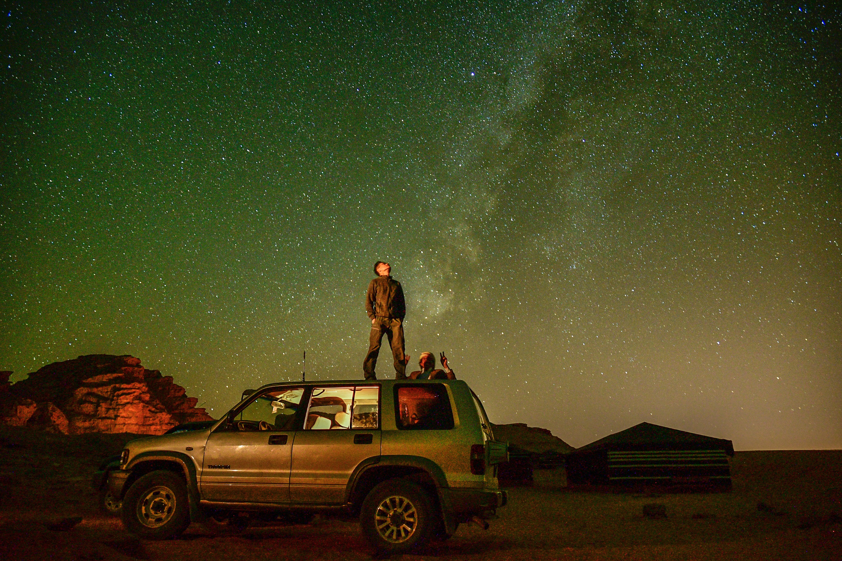 约旦在地理上比较吃亏,除了约旦河两侧有人定居以外其余地带几乎全是荒无人烟的不毛之地,在这些大片大片的沙漠中,瓦迪拉姆保护区作为自然与文化混合遗产属于约旦的必游之地,阿拉伯羚羊和贝都因人生活在这片浩大而一望无际的地区。在进入营地之前,不只一次想象过旷野中沙漠星空下围着篝火,酣醉后靠着骆驼相依的画面。