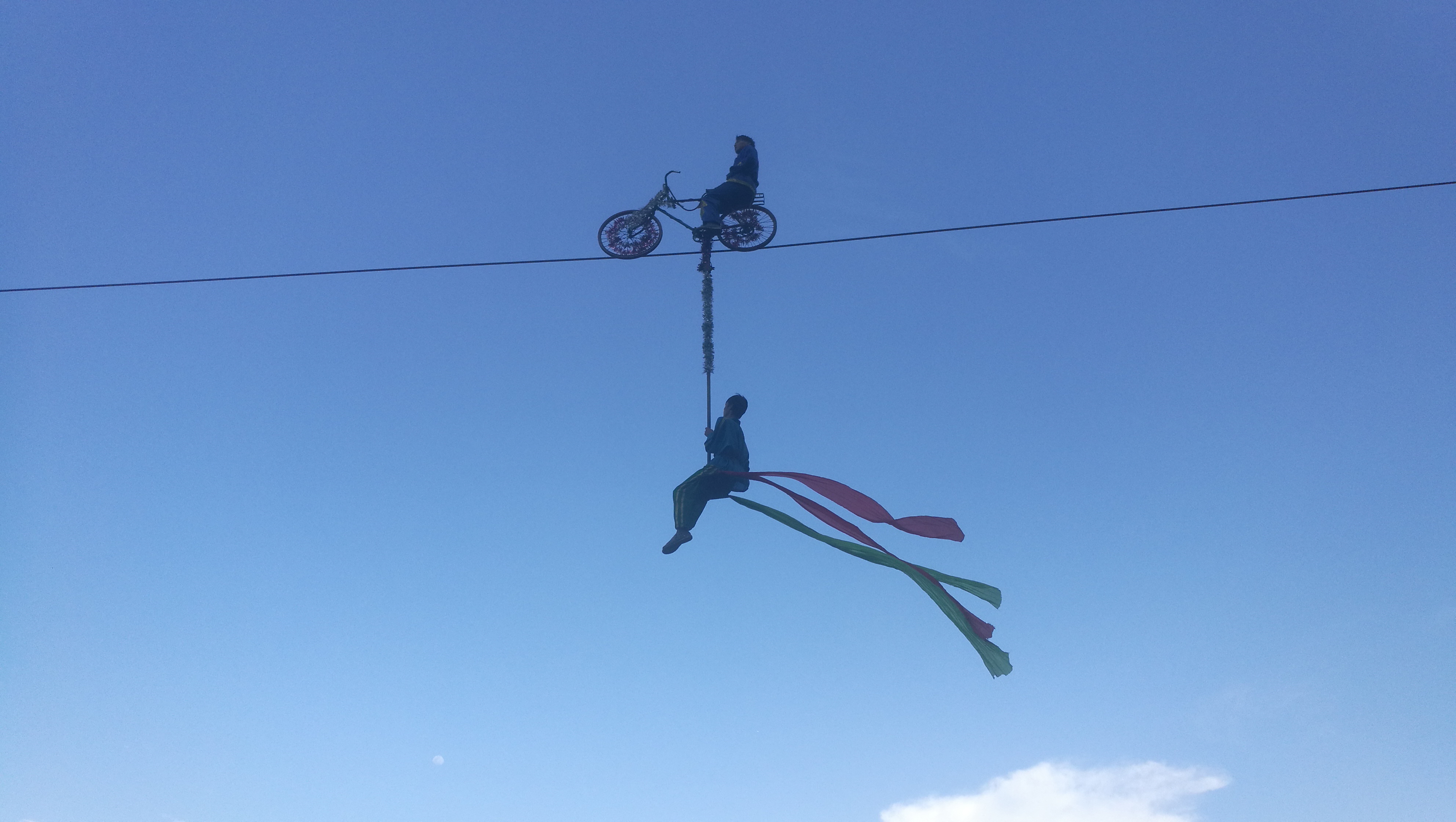 从天梯出来后,很幸运看到了大峡谷的铁索单车高空表演,辛苦这些杂技谋生的人们。