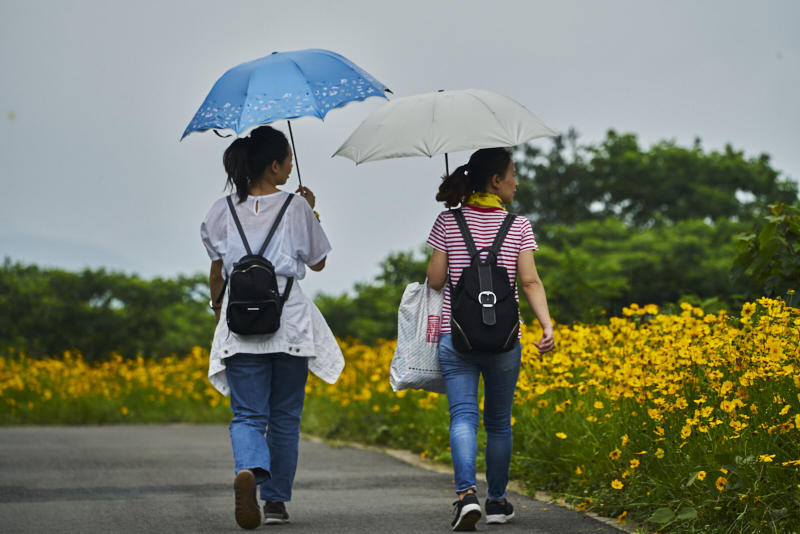 中午有一阵子微微透了点阳光,开始有些晒了,姑娘们撑起了伞。