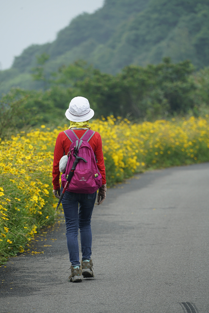 面对这么美的景色,怎么可以不把自己放进去呢。站着正面拍