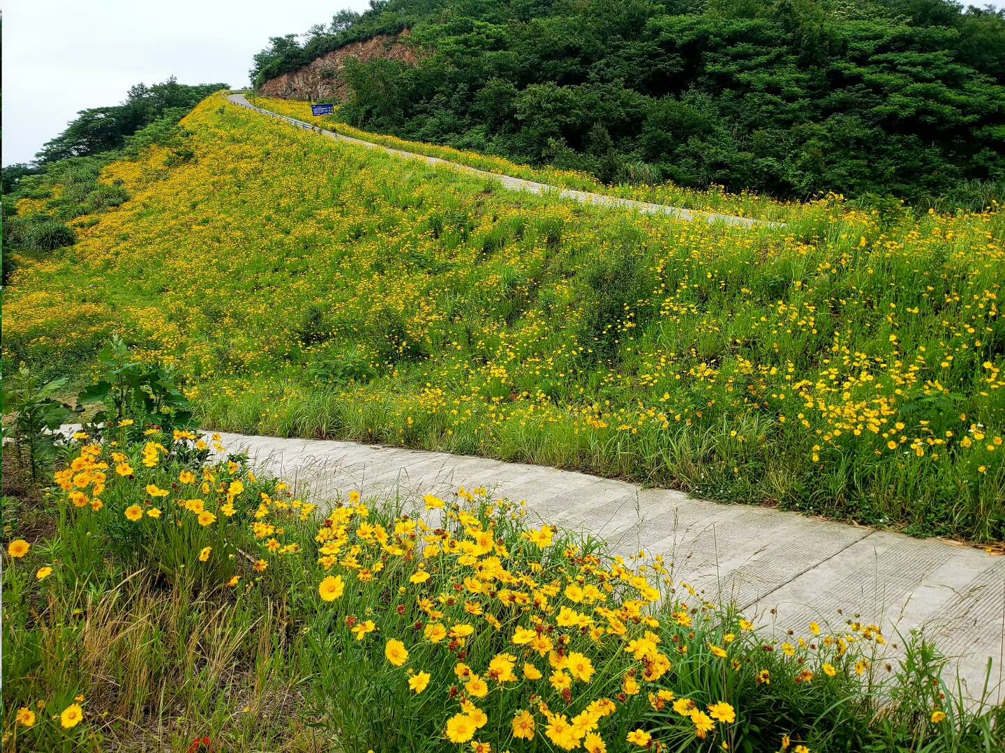 走到一处小山坡,此处我觉得是最美的地方啦,整个山坡洒满了金灿灿的花朵。