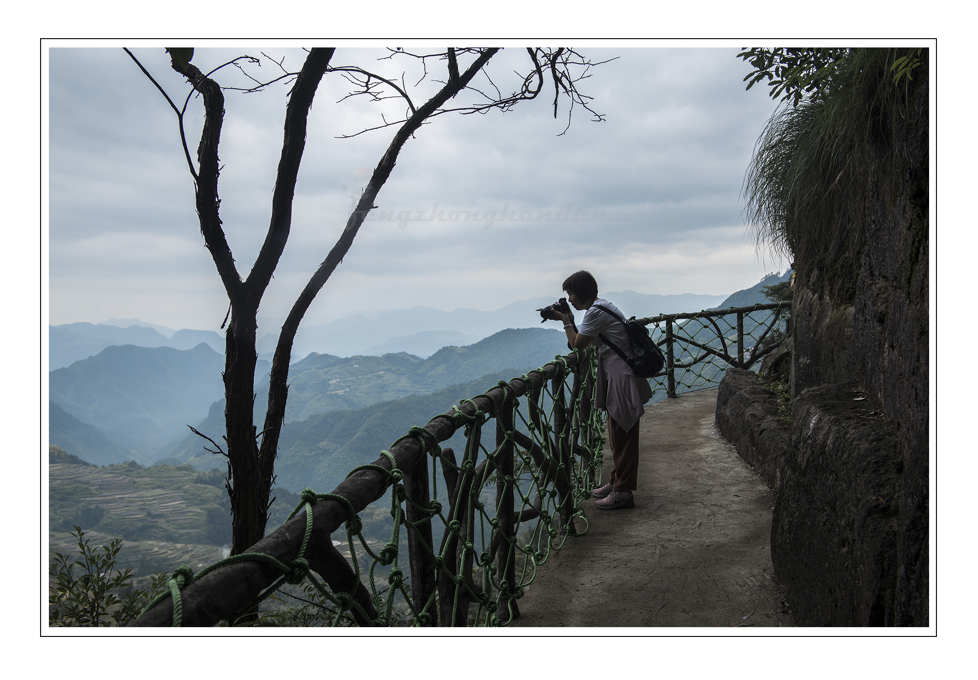鼎湖峰“老农牵牛”走过的石板桥下的河水涨了,但并不影响“老农牵牛”故事情节的演绎,只是在河滩上来来去去的行走,最终难免一脚泥泞,好在这一切对摄影人来说并不算什么。