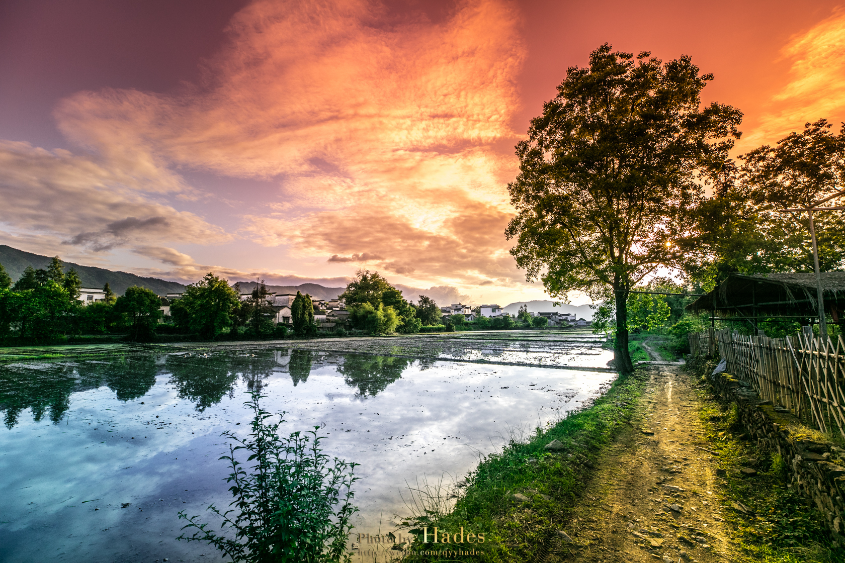 两年前,第一次来到宏村便被她的古朴唯美所震撼,再次到访,不经意走入同属宏村景区的南屏古村落。这里苍山如屏,水田如鳞,古树参天,灰瓦隐现。未入古村便已被南屏的灵秀迷醉,而落霞余晖更是美艳似幻!