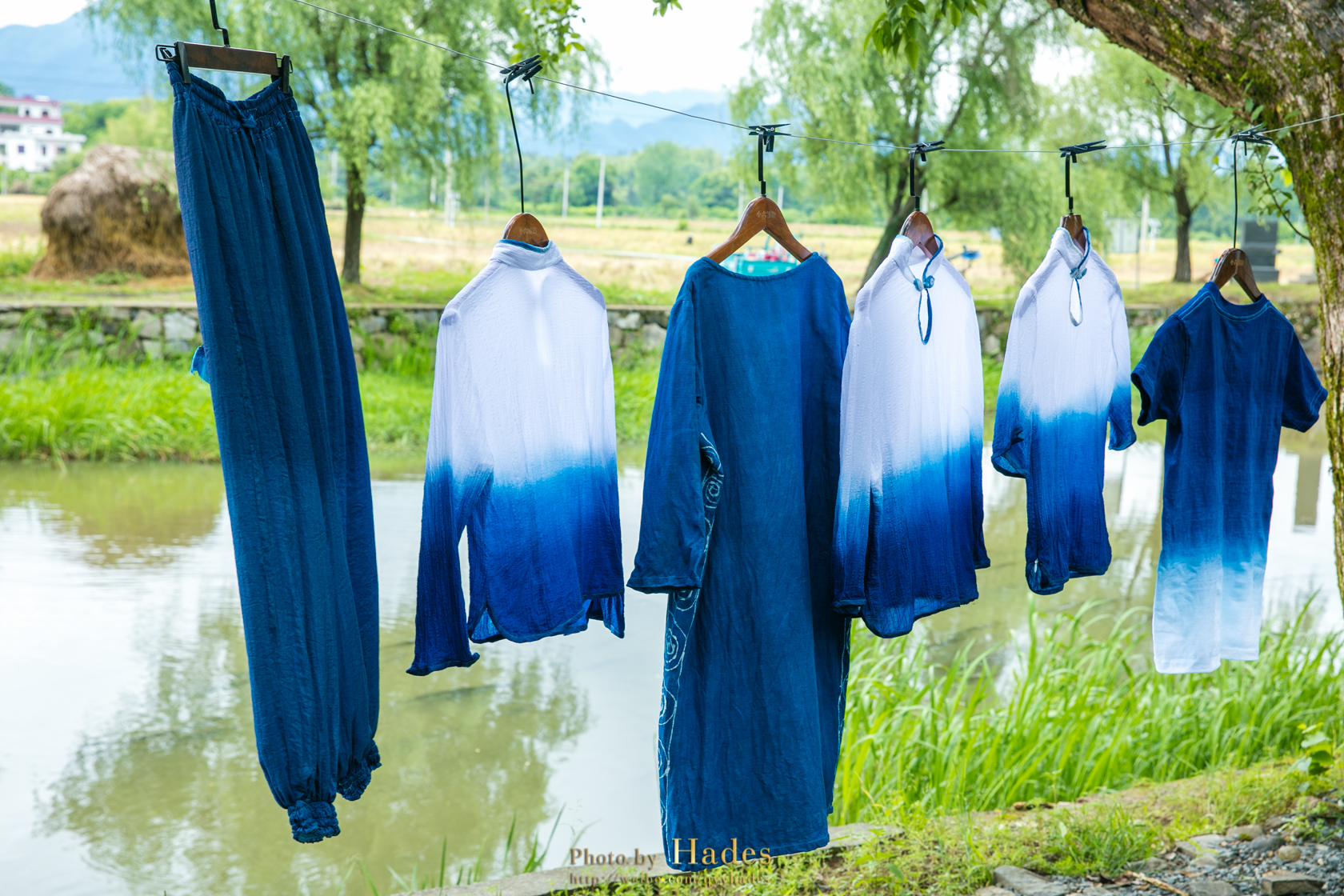 染好之后,布料要在空气中静置几分钟。蓝绿的颜色会慢慢变蓝,最后放到清水中洗涤一下,便会呈现出明亮耀眼的蓝色。