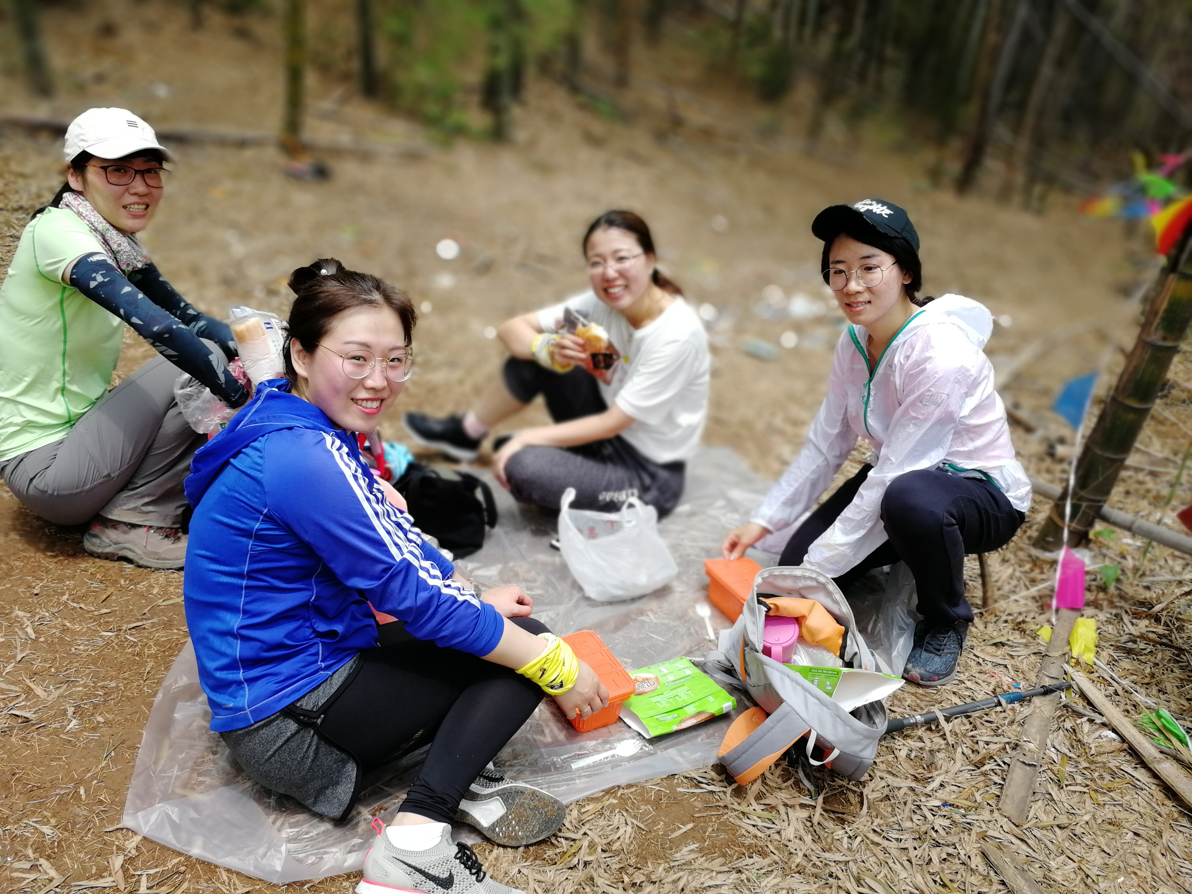 耶耶 ,在此休息,吃我们干粮啦,看大伙吃的很开心呢