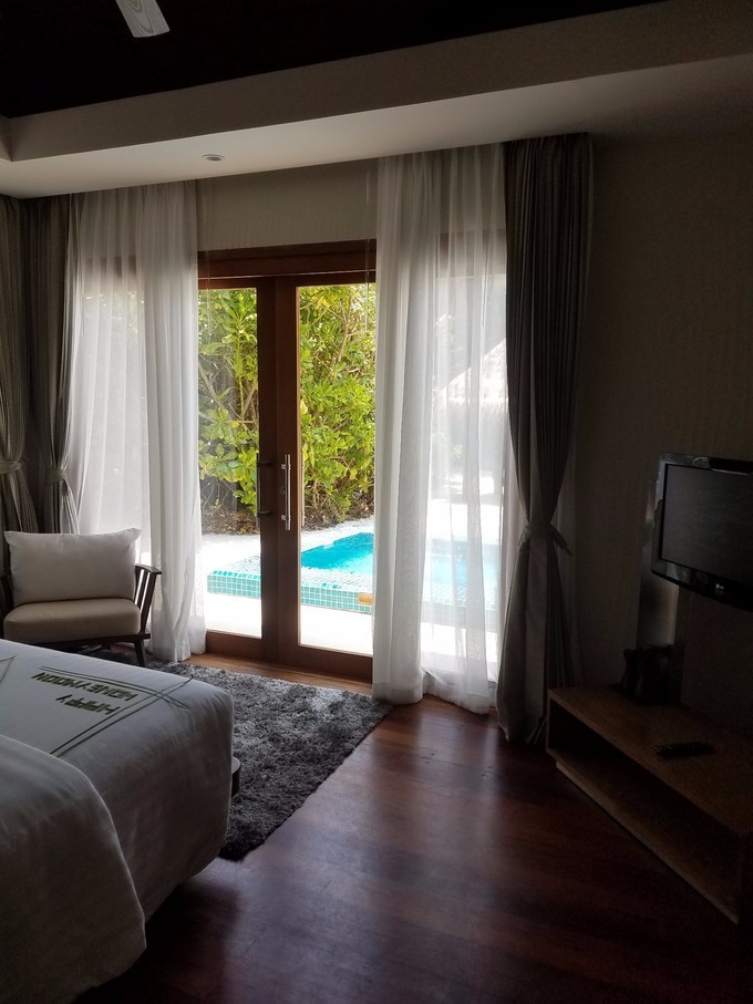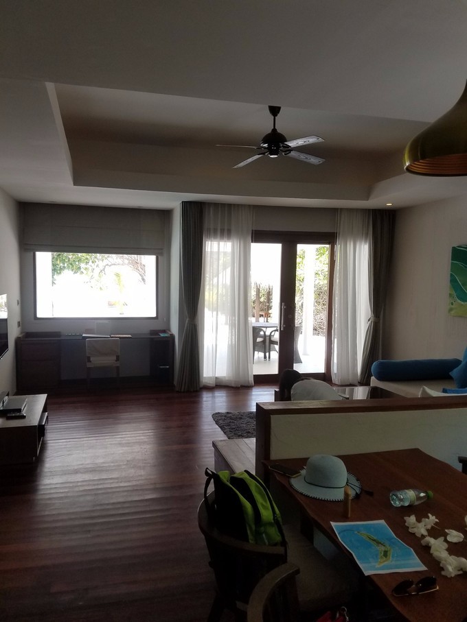 接下来价钱说完了就得说说准备事项了,各种衣服这种就不提了,我自己带的短袖短裤泳裤浮潜衣,我老婆带的短袖泳衣还是女生少不了的裙子。最最最关键的是一定要带够好的防晒霜.女生最好买浮潜衣和浮潜裤,我都是迪卡侬买的,它是有防晒指数的,个人感觉比涂防晒霜管用.然后转换插头的话房间里都有,基本是不需要(其他岛不保证,起码曼德芙就没有 )但是如果带的电器多,插线板一定要带。另外就是小费了,一块的五块的换一些就可以了。其他就不用,因为岛上消费挺高的,结账可以刷卡,VISA和银联都可以,但一定要信用卡。浮潜装备的话如果你有可以带,如果没有也不用刻意买,岛上有免费租用一套,浮潜三宝和脚蹼.离岛前一天晚五点前归还就可以。然后WIFI最好租一个,也没多少钱,水下相机也可以来个,租金都不贵,某宝都有。