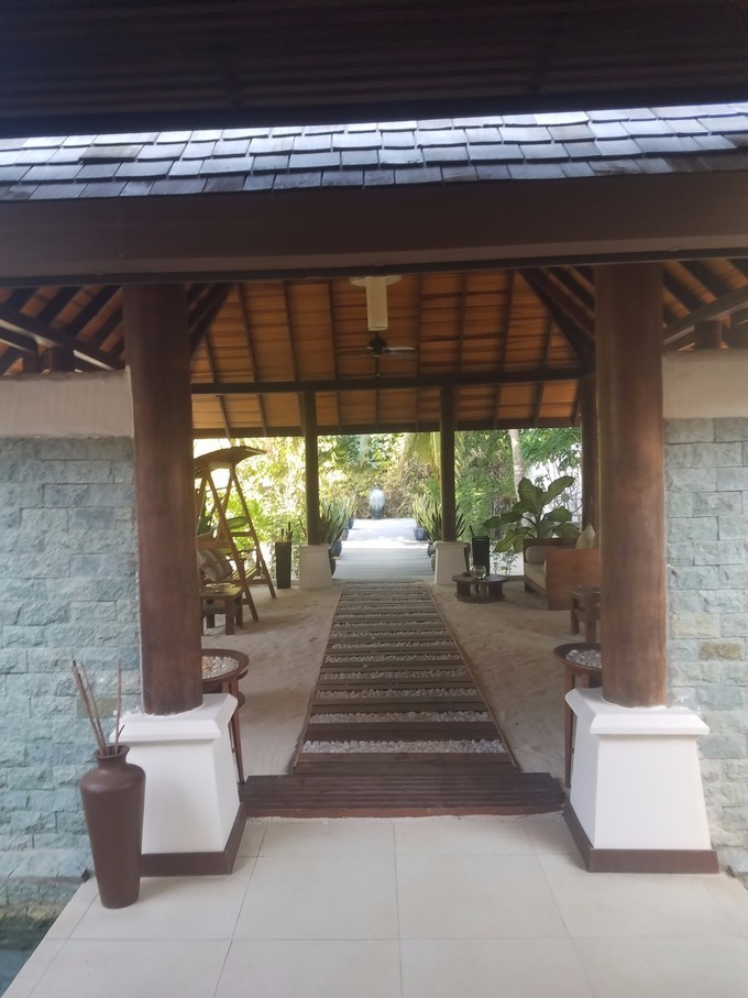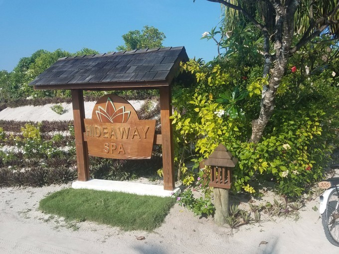 图片有颠倒,这是岛上的SPA馆,蜜月套餐有送20分钟的头部或者肩膀,可以加60美金一人升级为一小时全身按摩(就是精油按摩,含税之后大概75美金一个人,个人感觉比较坑,按的也一般)