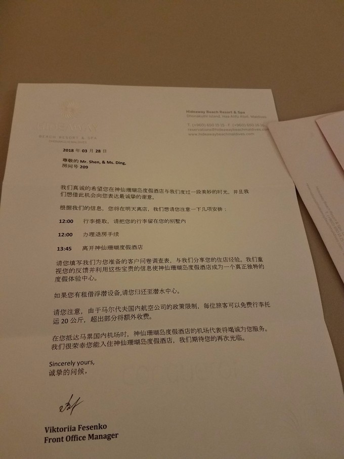 只要各种都准备好了就不用担心什么了,但是基本的英语单词最好会一些,好一点的岛可能会有中文服务,但是也有没有中文服务的.神仙珊瑚就比较好,前台可以讲中文,岛上也有中文服务业,管家倒没有看见会中文的,但是有微信啊,微信一加直接沟通啊,在这里一定要感谢微信,哈哈哈哈,另外自己手机下个翻译器就行了.
