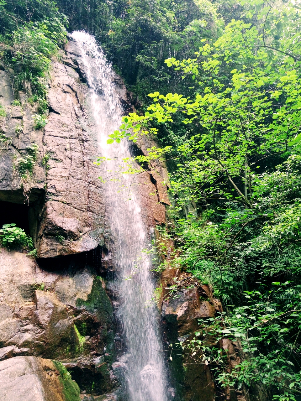 顺着剑池往下就会见到清凉处处的飞瀑美景,也会经过数道泠泠小溪。巨石细砂,清可见底。掬一抔涓涓,甚是清凉。捡了一块小石洗干净收好,这是我每去一个地方都会做的打卡方式。