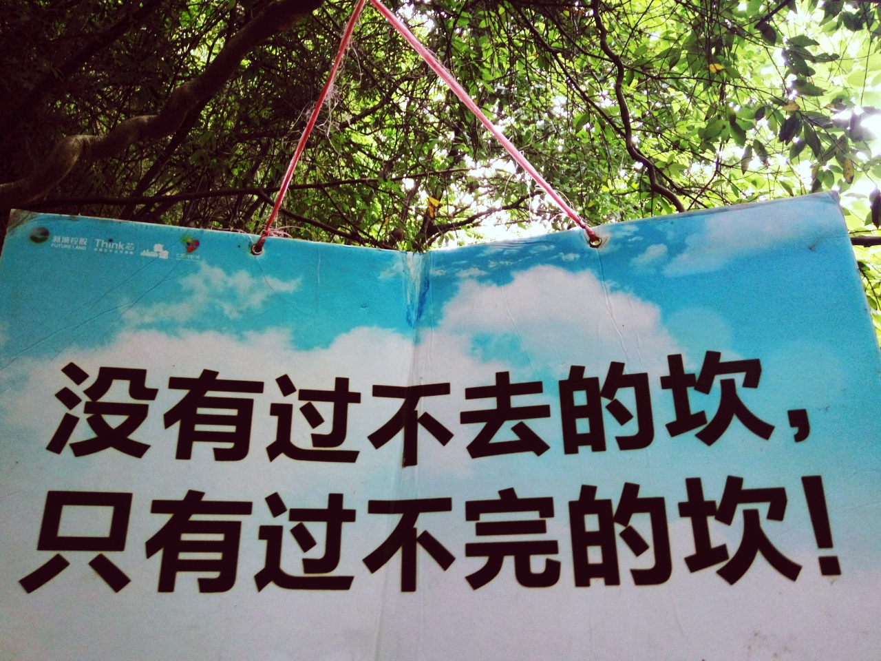 路上也遇到了一些比较有意思的东西。一块写着有意思话语的牌子,一个天然的烟灰缸,一根系着好多条俱乐部路标的竹子。