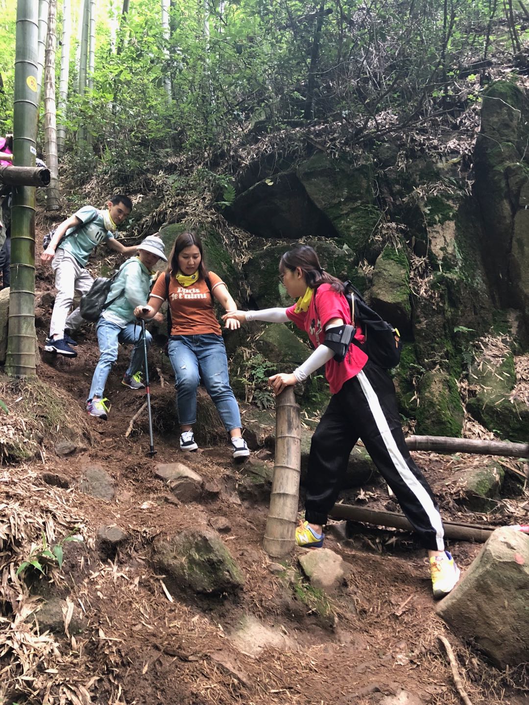 还好,有了双杖的帮助接下来的路走的顺畅了不少。其实只要脚步走的稳一点、慢一点,这段路也是有惊无险,还是比较有意思的。