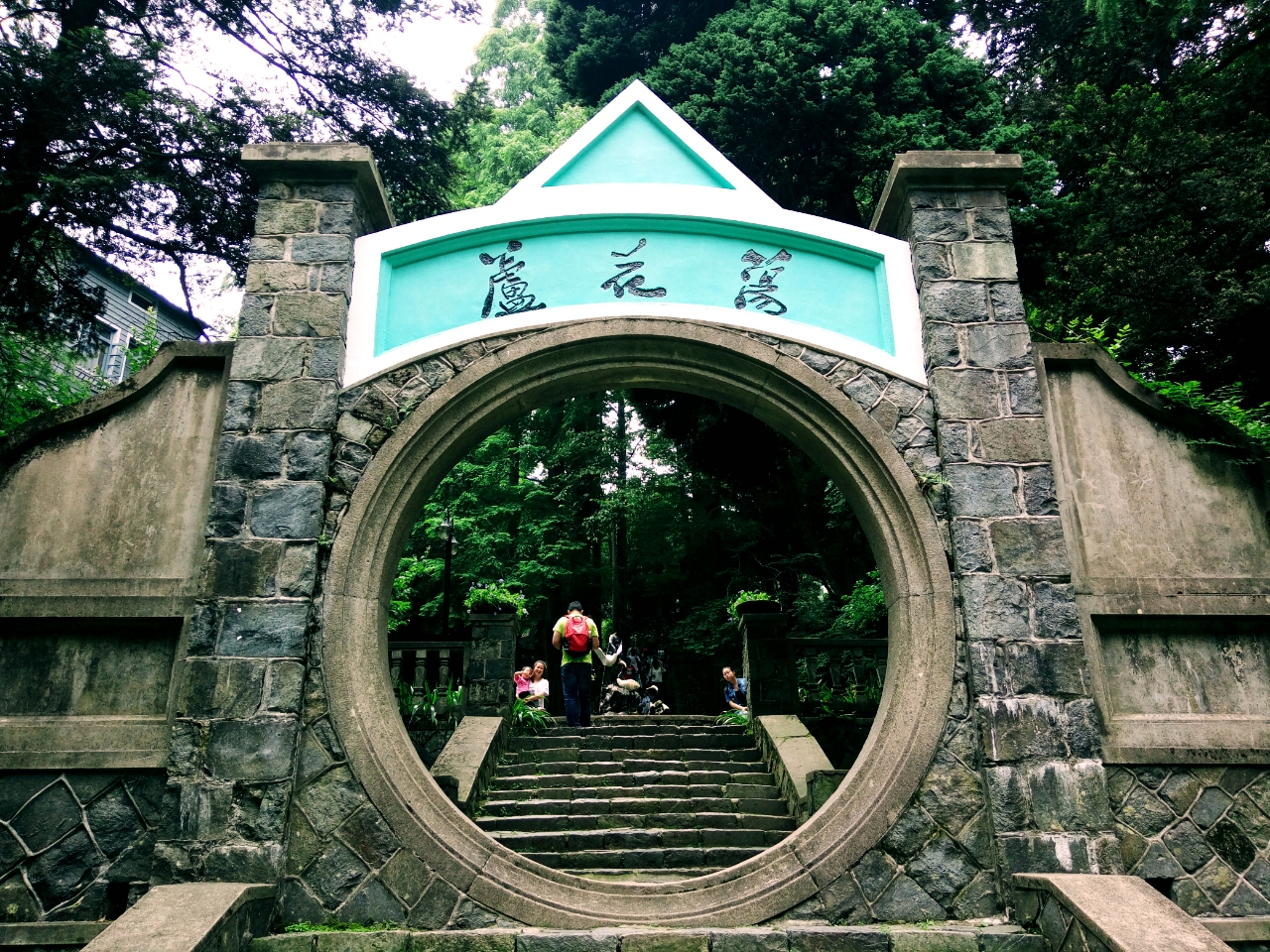 从停车场过去就是前往中华山的石阶,本想拍一张中华山的牌子没想到对面走来一位大哥入镜。那没办法了,我就拍了一张,只好委屈这位蓝衣大哥给我当个模特了。