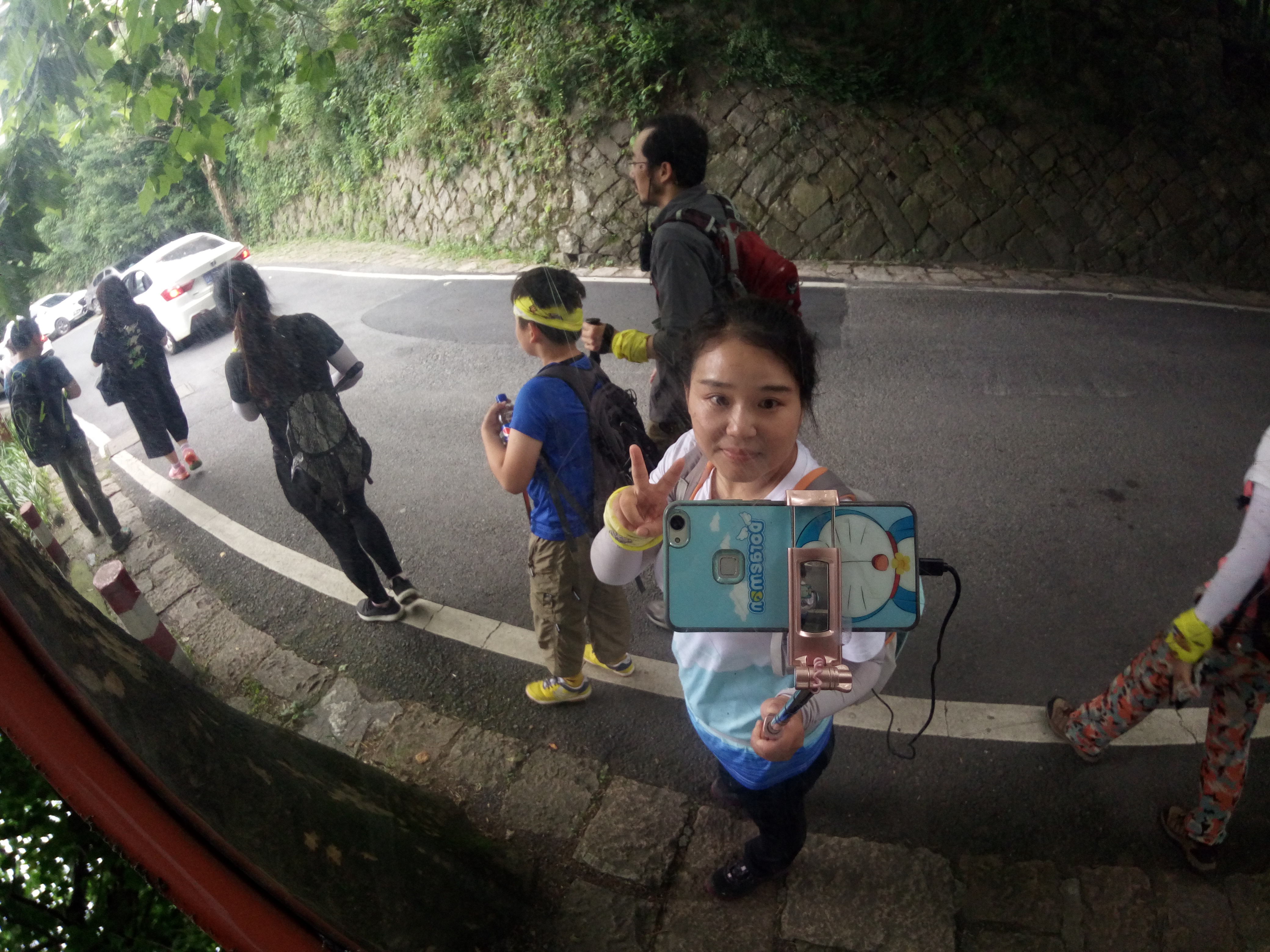 接下来的路途会经过一座寺庙但是并不是我们线路上的景点所以就没下去了,在这里我们和另外几个会合,然后结伴一起往前走,路过一个转弯道的镜子,调皮的借用了一下拍了照。