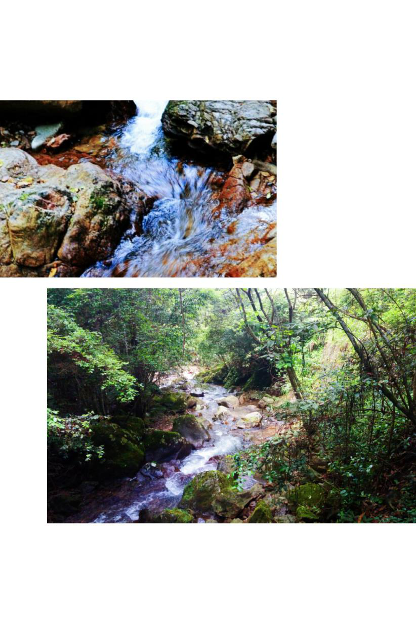 越往里走越感觉到一丝难得的凉意,空气中的水雾也越来越多的样子,眼前总感觉像是蒙了一层纱,但空气特别清新,每吸一口气都是满满的负氧离子。突然,眼睛的余光瞄到右侧的山水,简直被惊艳,不由得感叹怎么会有那么好看的水,“江南九寨”绝对名非虚传!草馨儿在《小溪》里用一句“从云的思念里来,从山的叶片里来”形容水的美妙,我不知道她见到怎样的水才会有如此描述,但我觉得一定也是我眼前的这般样子。水边茂密的绿植,向着水面生长,虽说这是植物的向水的天性,但总感觉它们是因为这水之美而迫不及待想要投入这水的怀抱。