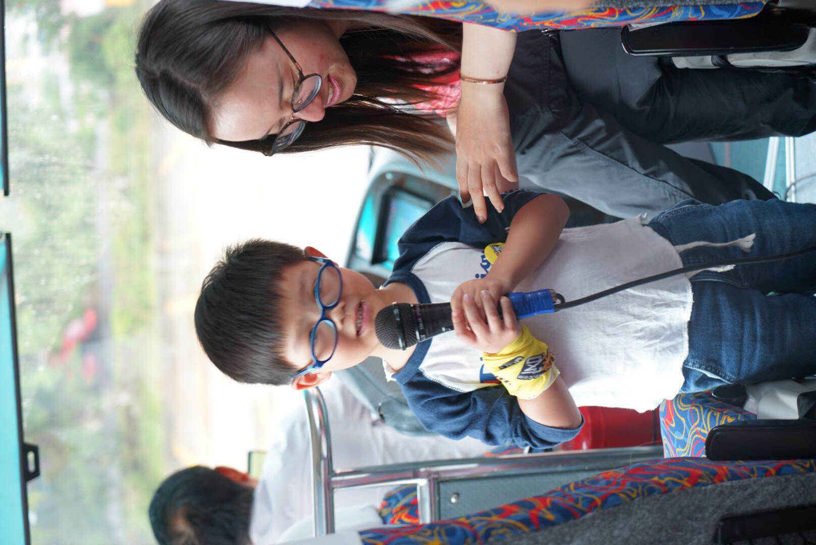 大小朋友们在车上破冰,小朋友们争相表演节目,唱歌,朗诵诗歌都信手拈来~~~