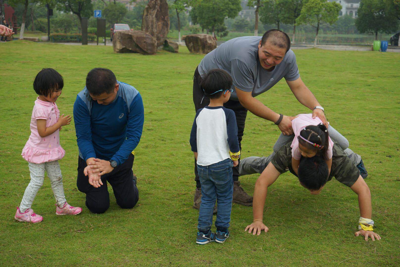 输了游戏的爸爸们心甘情愿的跳海草舞,做俯卧撑,整个草坪变成了一片欢乐的海洋~~~
