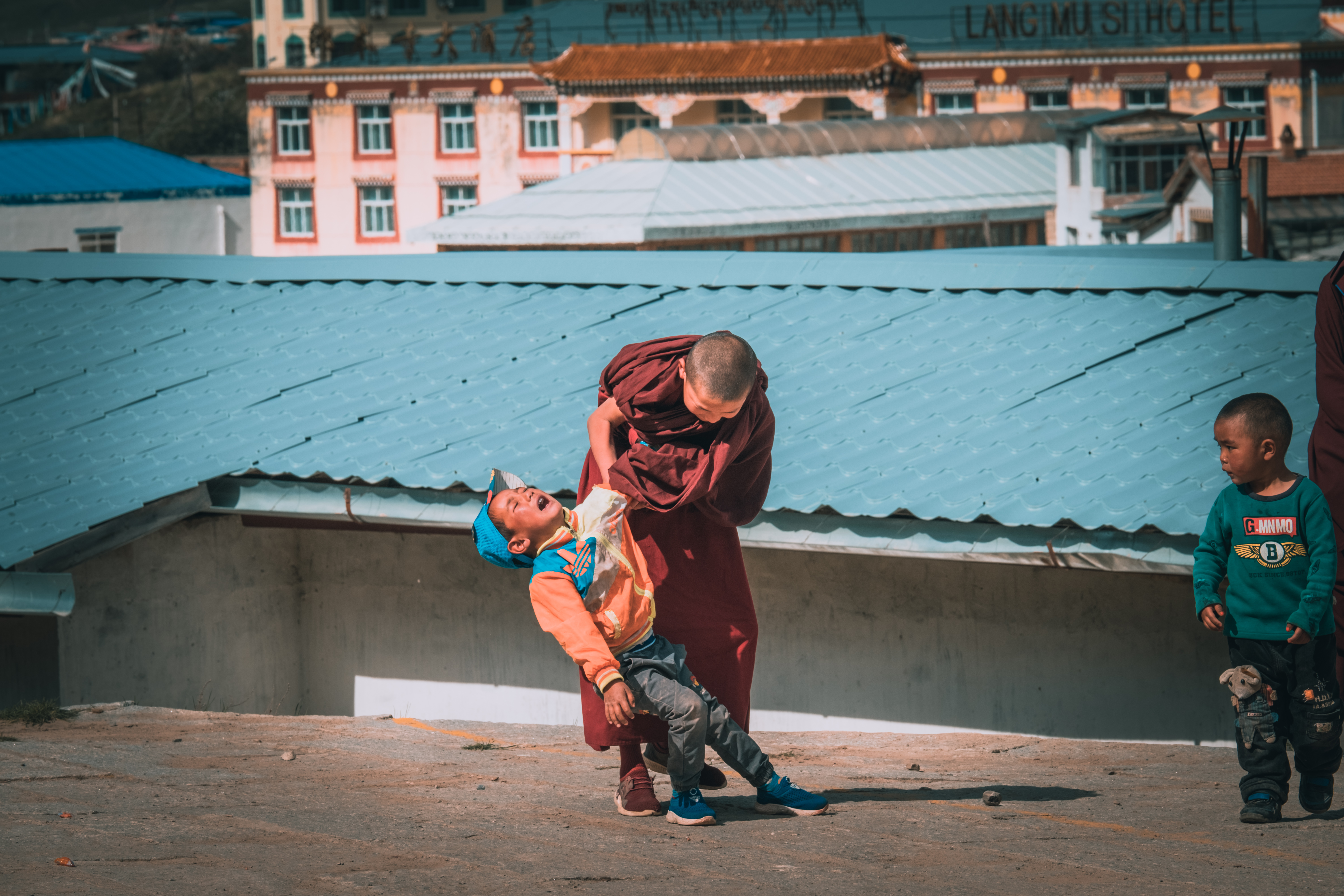 在山上拍摄全景的时候发现一群可爱的喇嘛拿着70-200mm的镜头在自拍,这是我看过最喜欢自拍的喇嘛,摆着各种姿势,各种角度。他们也是在这里学习的学生,正好法会结束他们有时间可以出来玩,我也用镜头记录下他们的身影,看着佛学院,不知道他们以后会不会改变当初的心愿去做一些他们真正喜欢做的事情!