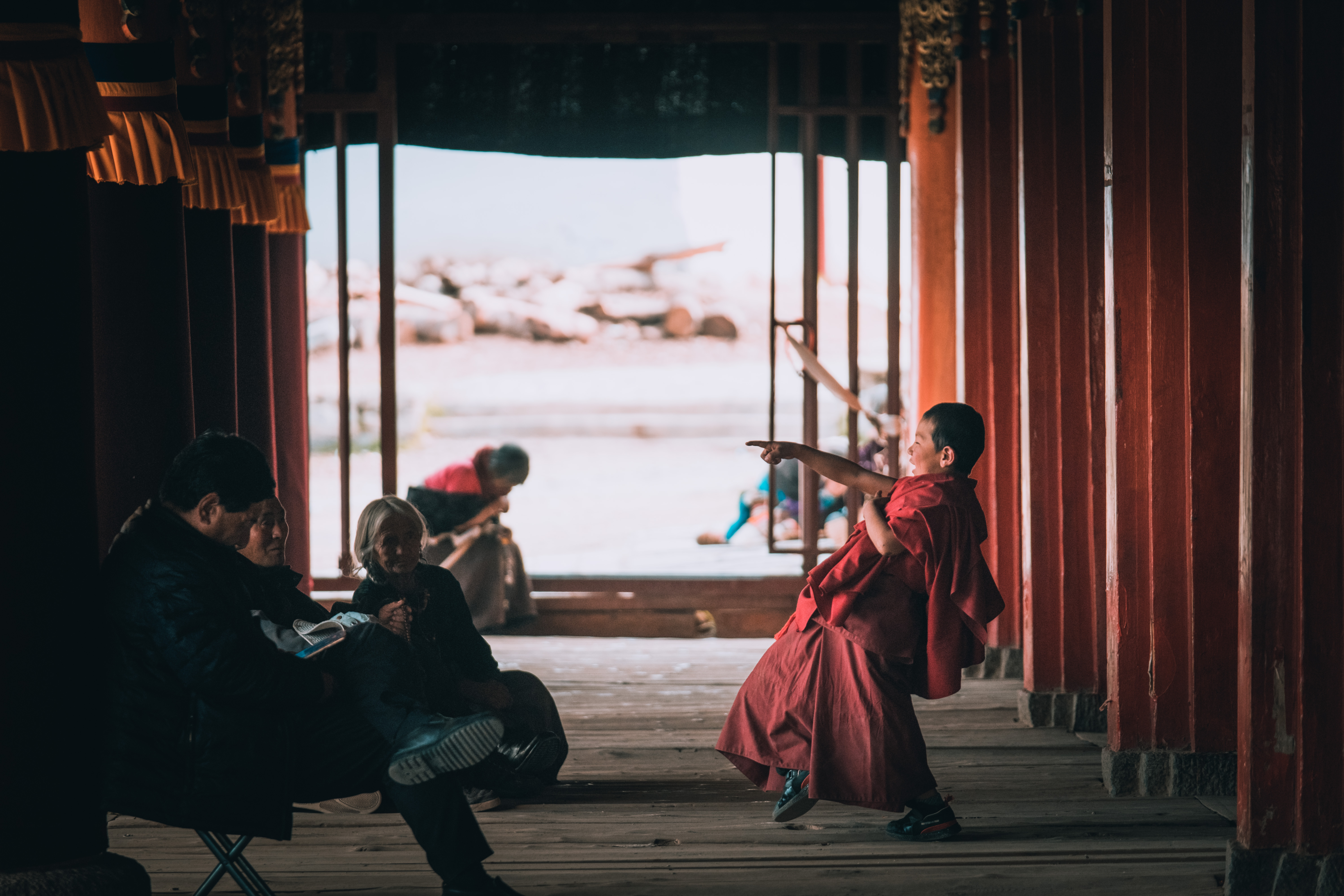 这次很有幸能看到清晨开启大殿的祈福仪式,神圣庄重,大师们嘴里默念着经文,整个空气都凝固了,没人说话,没人走动,只为静静等待进入大殿的时刻!一个可爱的孩子闯入我们当中,他不知道他们在做什么,对世界充满了好奇,我喜欢他那可爱的模样!