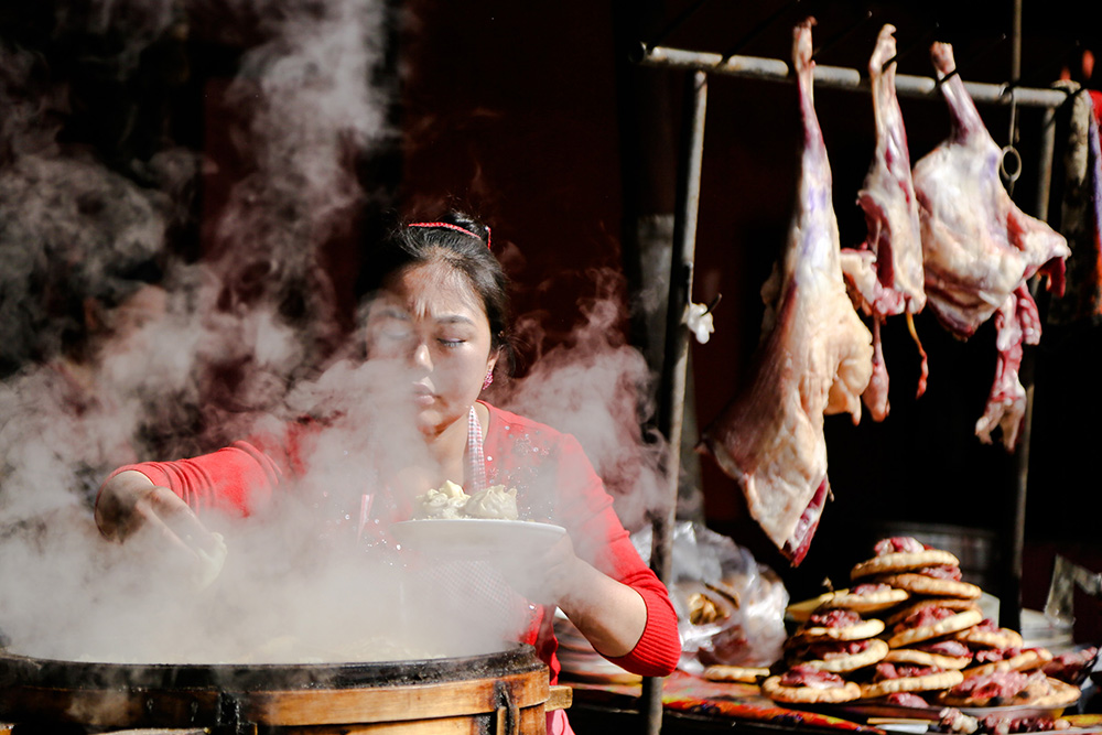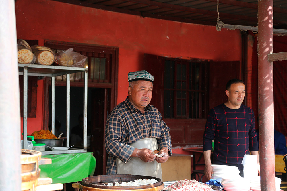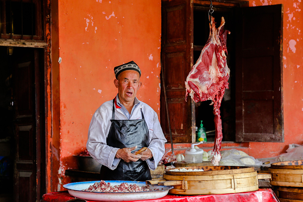 约12:00到达乌帕尔乡,进入巴扎拍摄人文。并在此午餐、补给。老冯、小冯我们三个点了一盘肉馕、两笼羊肉包子,第一次领略了南疆的饮食特色,羊肉包子的馅没有一点菜,肉馕就是在馕上放一块羊肉蒸一蒸,肉也咬不动,吃得我是干哕恶心,不习惯啊!