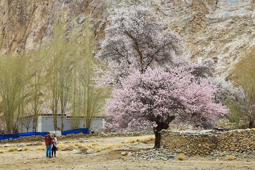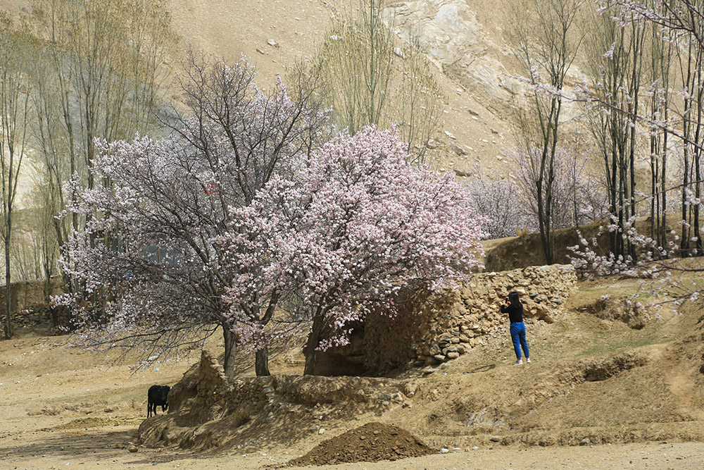 继续出发,路过一不知名的小村和其如克同村时,停车拍摄,但大部分杏花已经败落,只有小部分盛开。