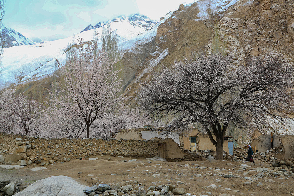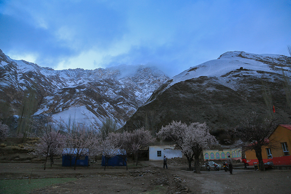 4月4日,昨天晚上的一场雨雪将瓦窑本村四周的大山装扮得银装素裹,给我们这些摄影人增添了不小的惊喜,于是早早起来,到村子里转转,伺机拍摄。据北纬老师讲,正是因了昨晚的一场雨雪,这是他见过拍过的最好的帕米尔杏花村!