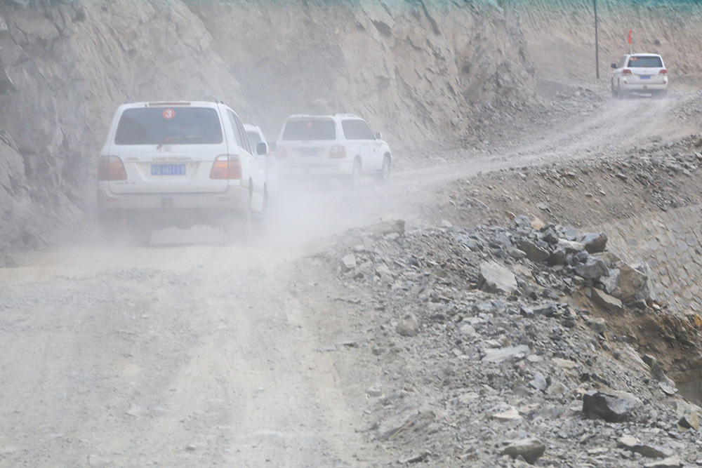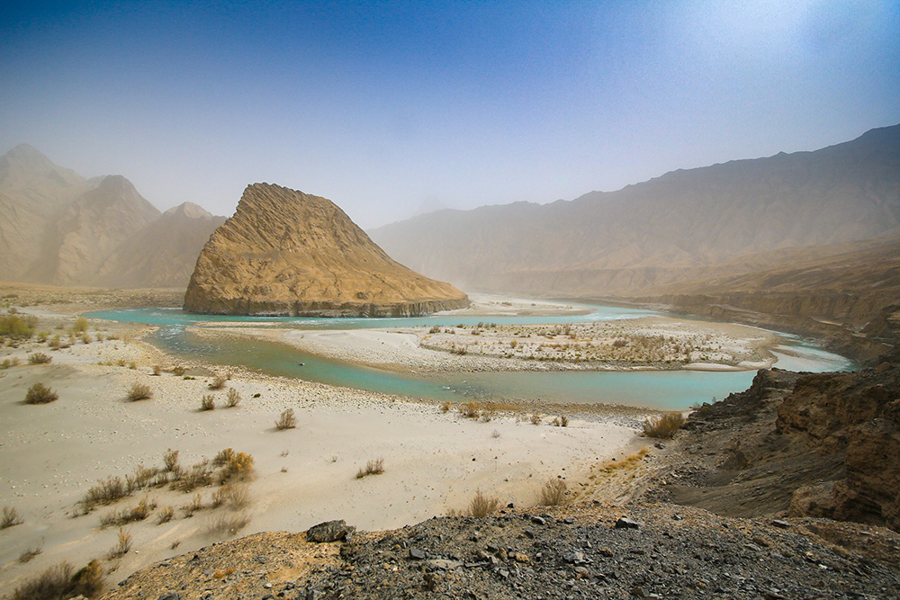 离开大同乡前往库斯拉甫乡。过大桥检查站时每个人都要持身份证一次登记检查,此处是大同河与塔什库尔干河交汇处,之后成为叶尔羌河,之后我们一直沿着叶尔羌河前行,到达叶尔羌河大拐弯,临时停车拍摄。一路沙尘暴!