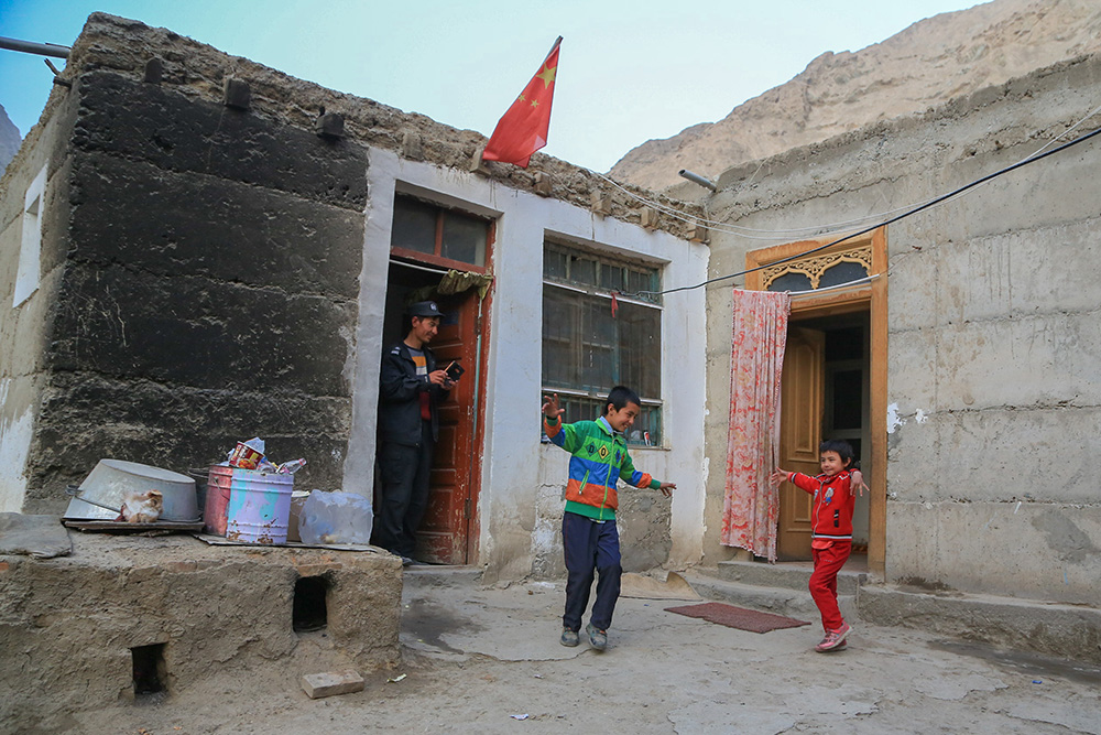 幸运的是,我们在这海拔3000多米的边防小山村,见到了“日照金山”的美丽景观。这个小山村不大,几分钟就可以从这头走到那头,道路的两旁分布着稀稀拉拉的房子,估计也就三四十户人家,我们在村子里随便拍摄。返回驻地,简单早餐(奶茶和馕,没有其他!)后,10:30集合出发塔尔乡。尼牙孜•阿里甫一家为我们送行。