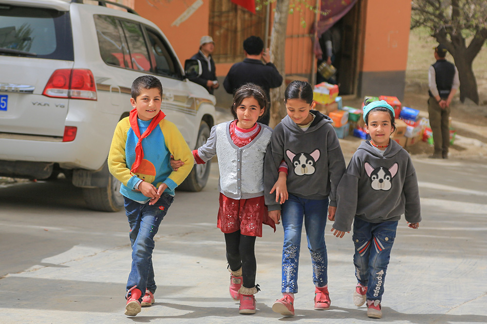 大约13:50到达塔尔乡学校,进行爱心物资发放,游侠们纷纷拿出自己带来的一些学习用品分发给孩子们,学生们开始午餐,跳舞,大合影。塔尔乡学校有170多名学生,一年级30名。努如拉老师家住在阿克陶县城,平时每两周回家一次。