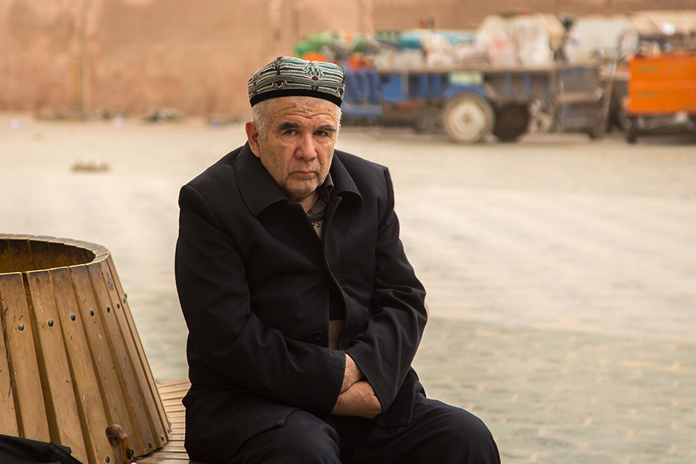 路过阿克其格村,路边只有一家,老两口和女儿。他们日常用的水都是女儿从几百米远的小河里担来的,我们来的时候,正好遇到女儿在担水。在室内自然光下,给维族老人拍照。