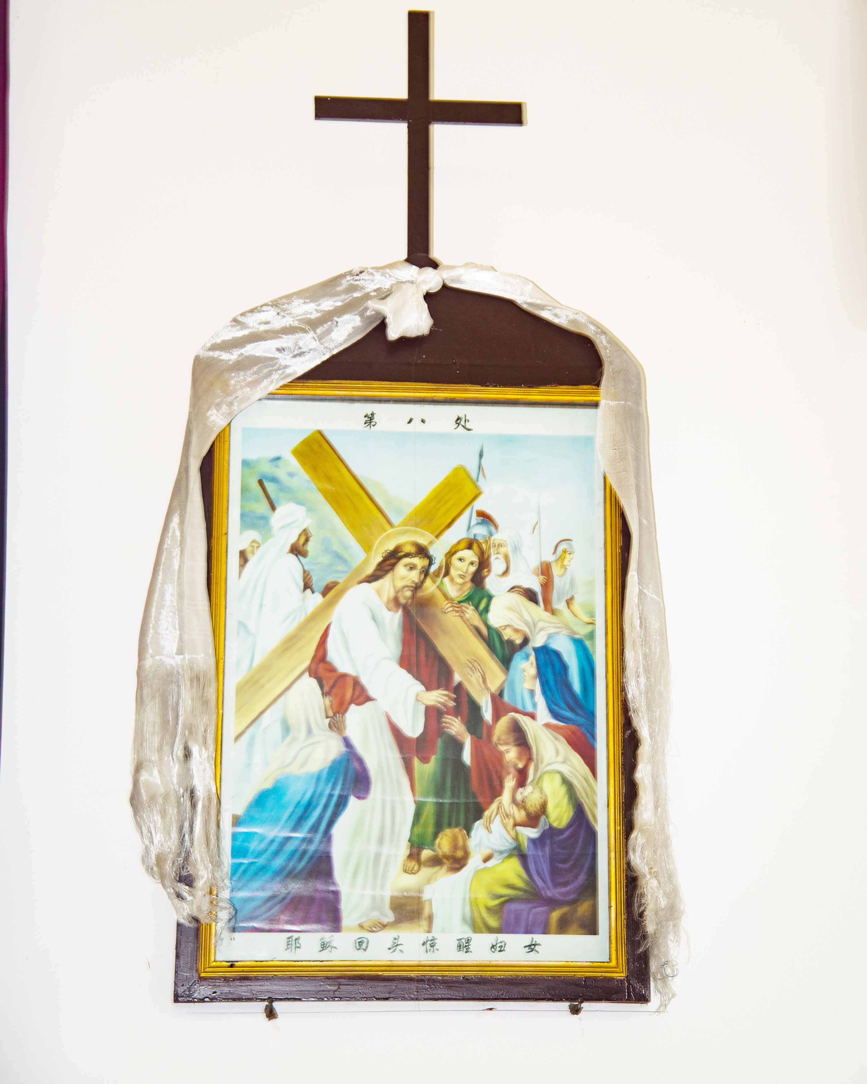 盐井是一个全民信教的地区,除了信仰藏传佛教外,还有不少人信仰天主教;有一大半既信藏传佛教又信天主教;很多藏民家里,既供奉释伽牟尼又供奉耶稣,两个完全不同的教派在这里得到融合。