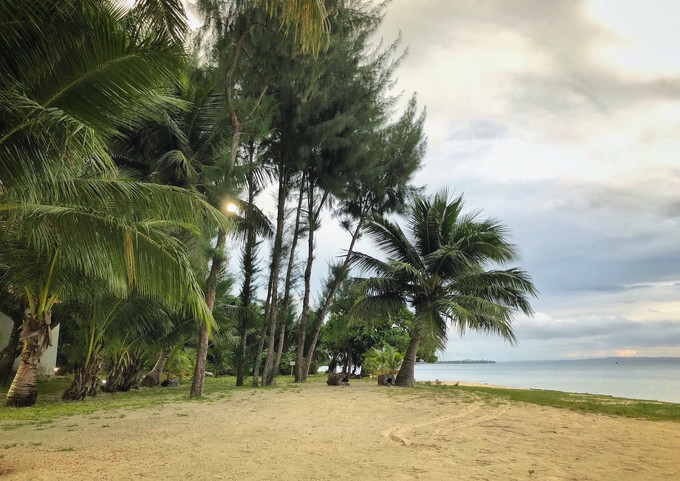 海水特别蓝,离沙滩由近及远,蓝色显示不同的层次,从清澈的浅蓝,到蔚蓝,再到如绿宝石般的宝蓝,除了 斐济 ,这是我们接触漂亮的海水和沙滩,不由的停在那里任由满眼的蓝充斥眼底,静静的欣赏着如油画般的美景。沙滩很宽,椰树随意的生长在沙滩的边缘地带,毫不突兀的点缀着如斯美景。赤着脚走在沙滩上,任由沙子细细的裹在脚周,海水柔柔的拂过脚背,又缓缓的退回去。如果一步步走向海中央,会发现走了很远,海水还只是平肩。